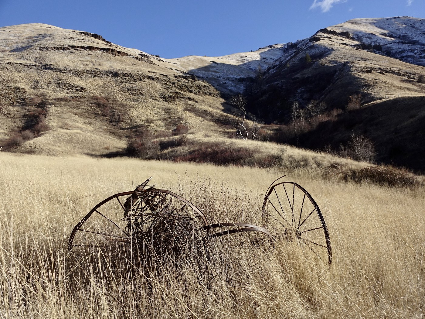 This area is located in the extreme southeast corner of Wa near where the Grande Ronde and Snake Rivers join. An old road heads up the canyon which is now called The Green Gulch Trail. It goes for miles and starts to swing back toward the north and the confluence of the two rivers. This is a good option during the winter months as it starts at a lowly 1000' where snow is rare.