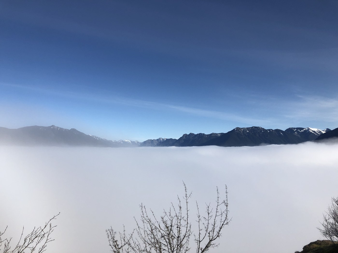 You do not need a pass to hike this trail but be prepared to see lots of people and dogs. There was a worker clearing the trail from fallen trees and the path was a bit muddy. I used trekking poles which helped up the steeper climb and coming down the slippery sections. The view from the ledge was gorgeous above the fog! Be careful as there are lots of people and dogs on the ledge.