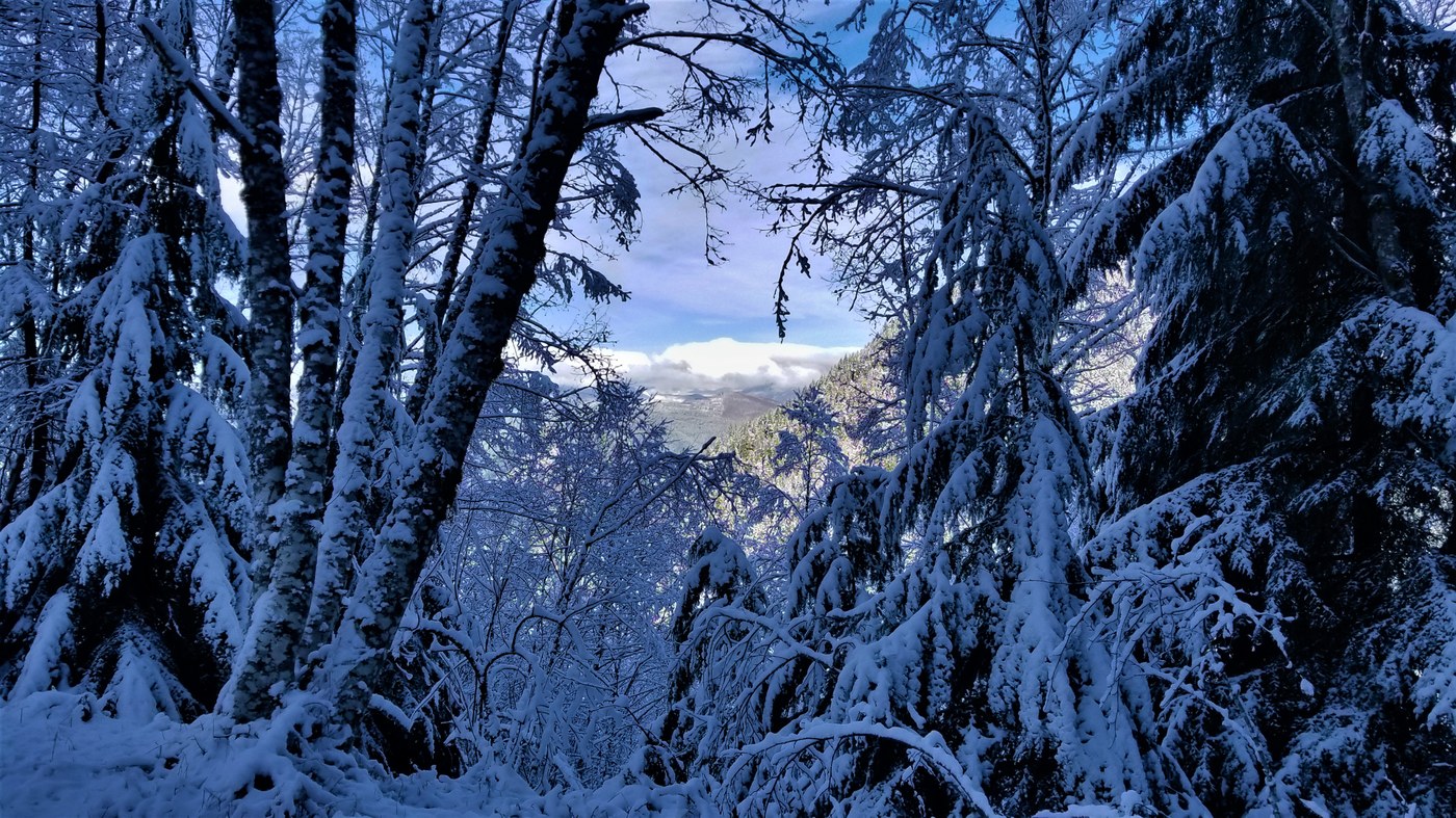 There was a bit of recent snow, not enough for snowshoes, but we opted to start out the hike with our microspikes on. We had some issues with snowballing, but there were just enough slippery spots that having them on was worth it, but they weren't absolutely necessary.