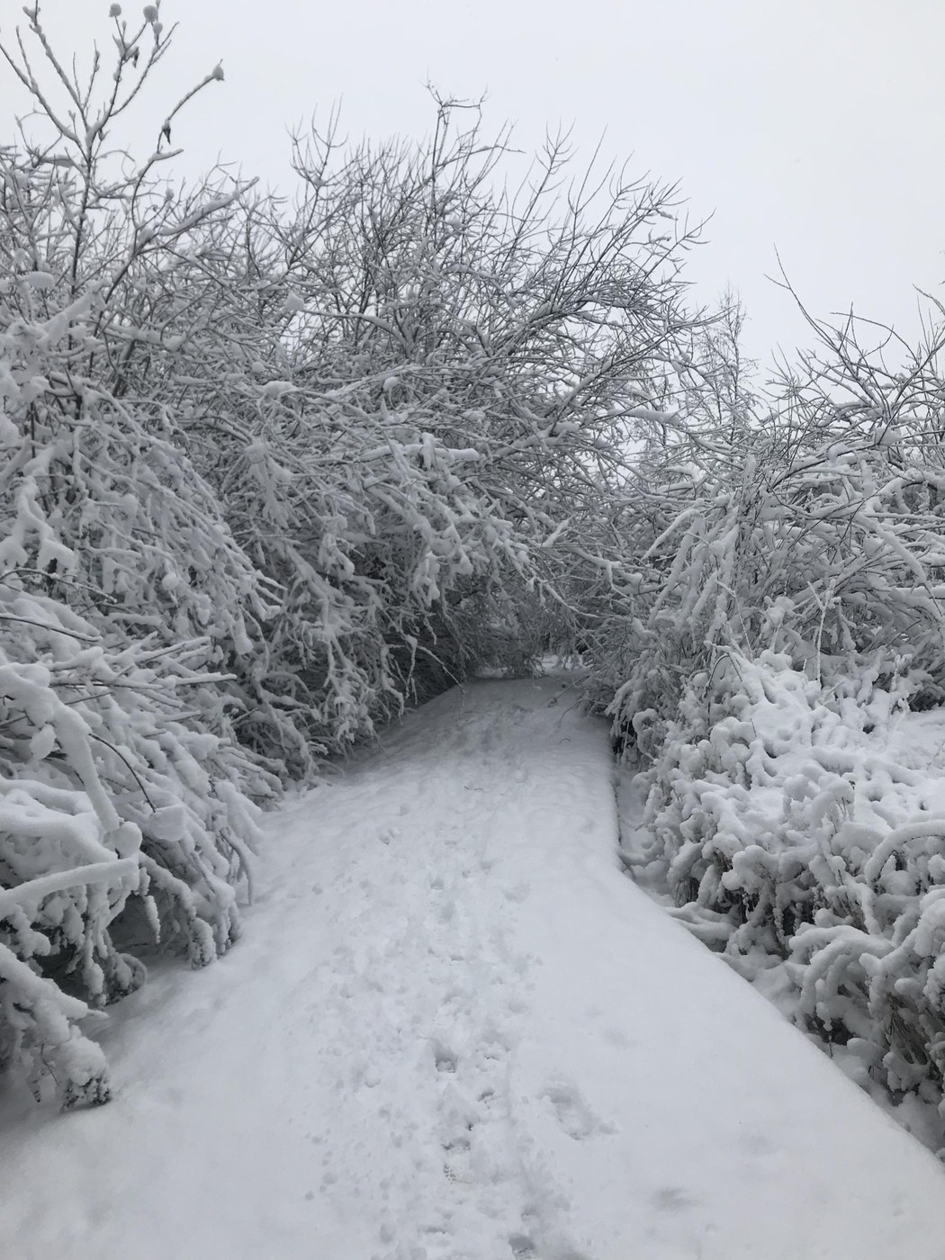 Having just received 6+ inches we headed out early on cross country skis. Heavy, wet snow draped the branches of eucalyptus trees and other exotics. The snow muffled sounds, it was a beautiful time.