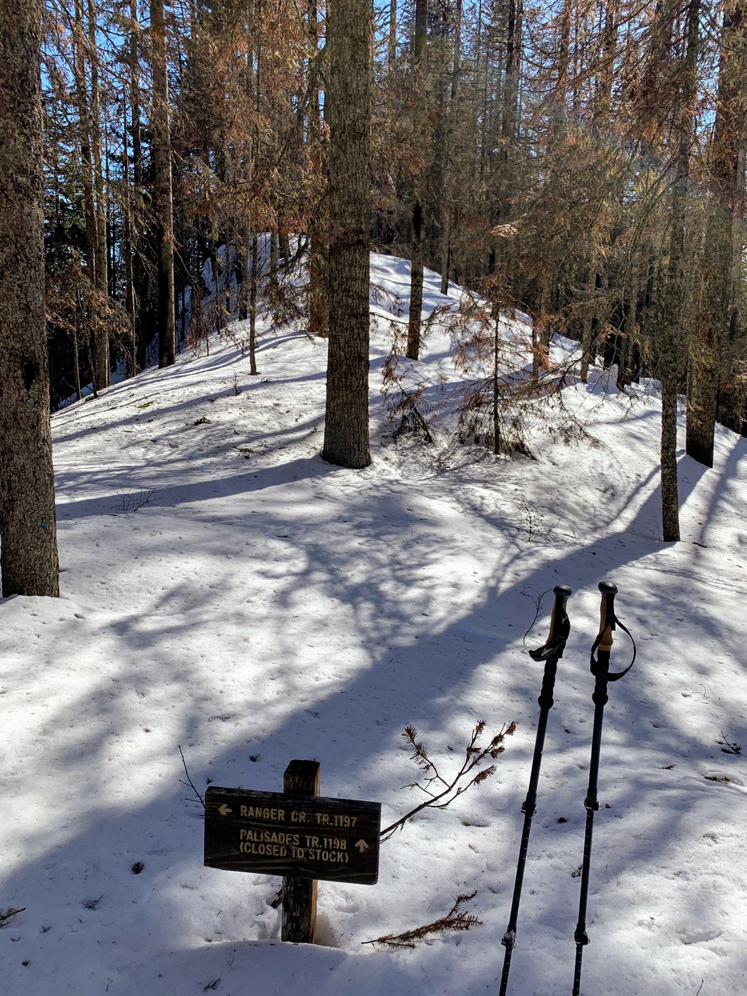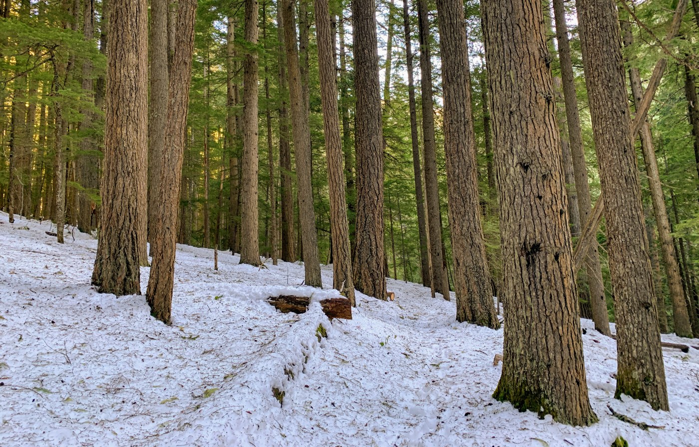The trail was completely covered in snow, I used snowshoes all the way. I could follow the elk prints on the trail most of the way.