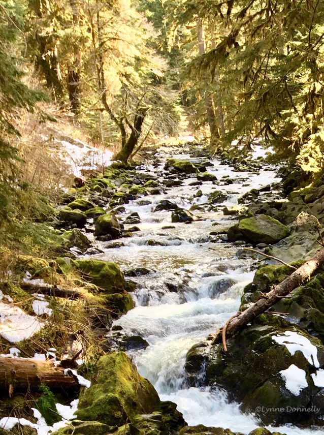 Arrived about 10:45 and only one car in the parking lot! It’s been years since we’ve seen that. Trail was great — not even muddy — except for two trees down across it. They were navigable though. Not nearly as much water flowing as this time last year with our dry winter and spring.
