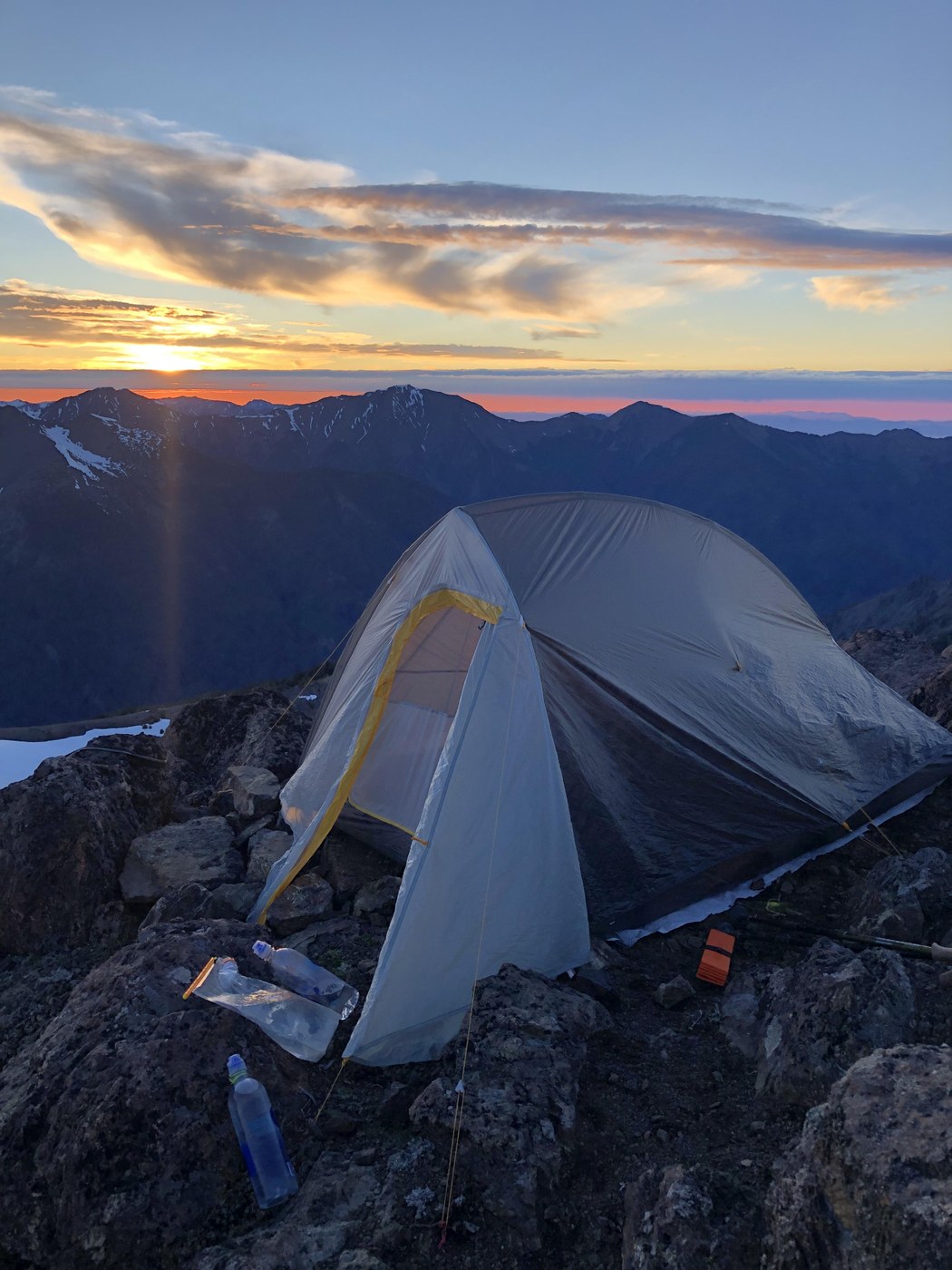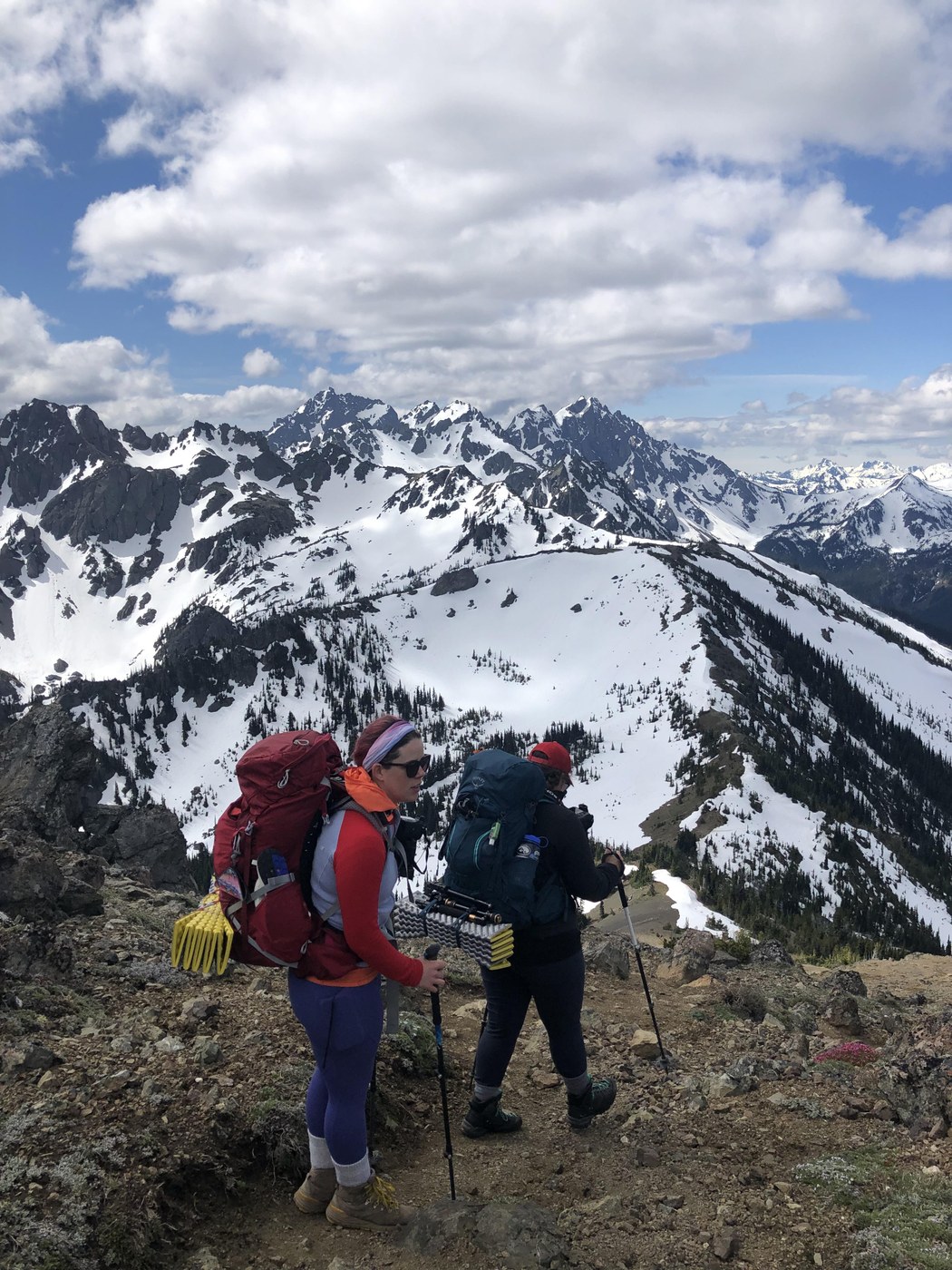 After watching the weather go back and forth Saturday night we decided to test our luck and come out to Marmot Pass/Buckhorn Mountain. So thankful we did because the weather was amazing and so were the views. There were some trees down on the trail, but nothing impossible to cross. The snow was intermittent on the final mile to the pass, we all post holed a little here so be careful. The trail from Marmot Pass to Buckhorn Mountain was entirely free of snow. There are only a few patches left around Buckhorn so if you plan to camp up there make sure to fill up on water at Camp Mystery as there mostly likely won’t be much snow for melting.