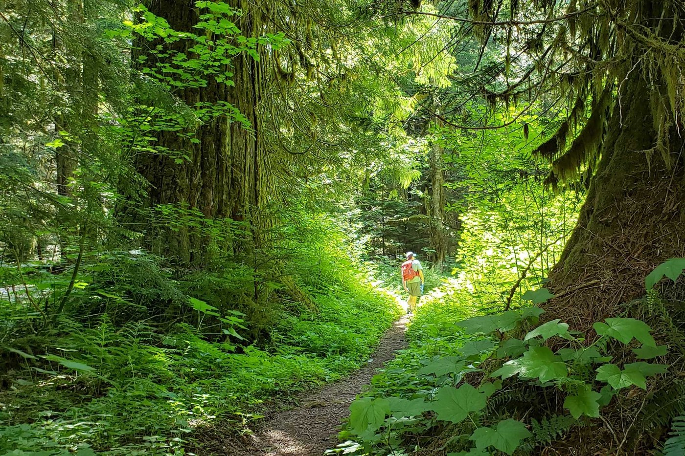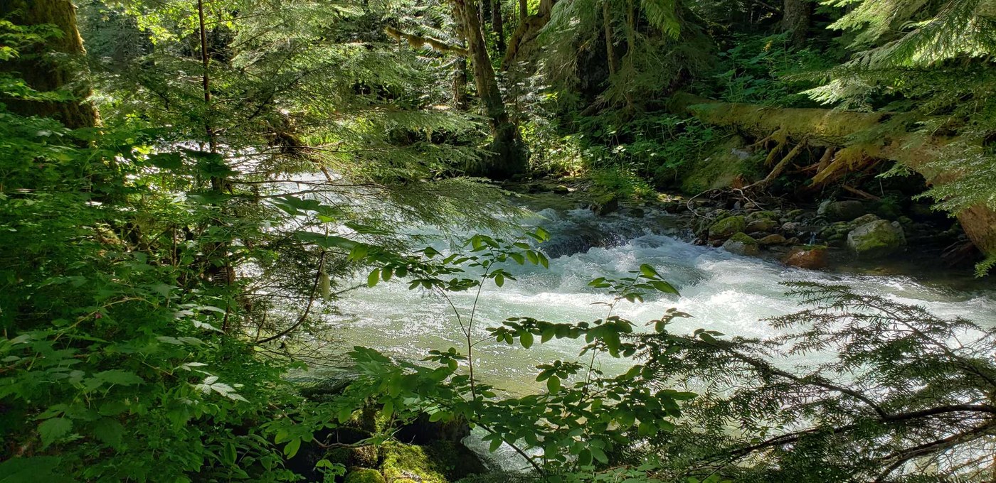 This is lovely old-growth forest-- some of the nicest I've ever seen in the Cascades. There's one small creek crossing about a mile and where our feet got wet but in general the trail is very nice. This time of year there's just enough running water for your dog if you forget to bring a little bowl, though you don't generally have access to the Sauk, which was absolutely raging. We turned around at the river crossing, at 4 miles, but you don't need to go far at all to see the exceptional forest (the cedar groves in particular are nicest at the beginning). On this beautiful sunny Sunday we saw a large group of about 10 skiers heading back from earning their turns, a large group of backpackers coming back, and maybe 12 or so other people. I was actually surprised that we saw as many people as we did given that we had to drive on about 14 miles of unpaved road (including the unpaved stretch of Mountain Loop Highway), however, if you took away the two large groups there wouldn't have been many at all.