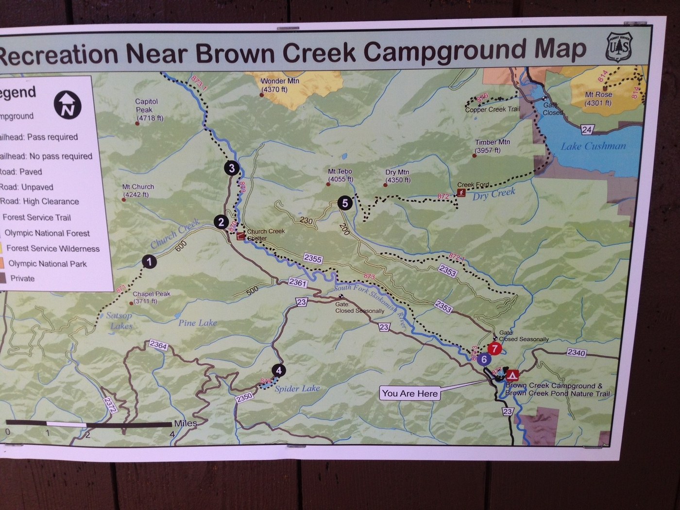 This was not an easy trailhead to find in spite of having search4solitude's pretty good directions with me. It is definitely more complicated than implied by the straightforward directions in the Hike Description. Not all of the roads out here are well-signed and sometimes the sign that does exist is not in the most visible place--easy to miss some of them. After trying what seemed like every possible combination of wrong turns on wrong roads, I consulted a reader board at Brown Creek Campground (on my second unintended visit to the campground) and found a good map and directions posted on it. I took pictures of those and they are included in this report to hopefully prevent others from wasting the amount of time I did. Note: If you get to Brown Creek Campground, you missed a turn. Don't bother trying any of the roads around the campground.