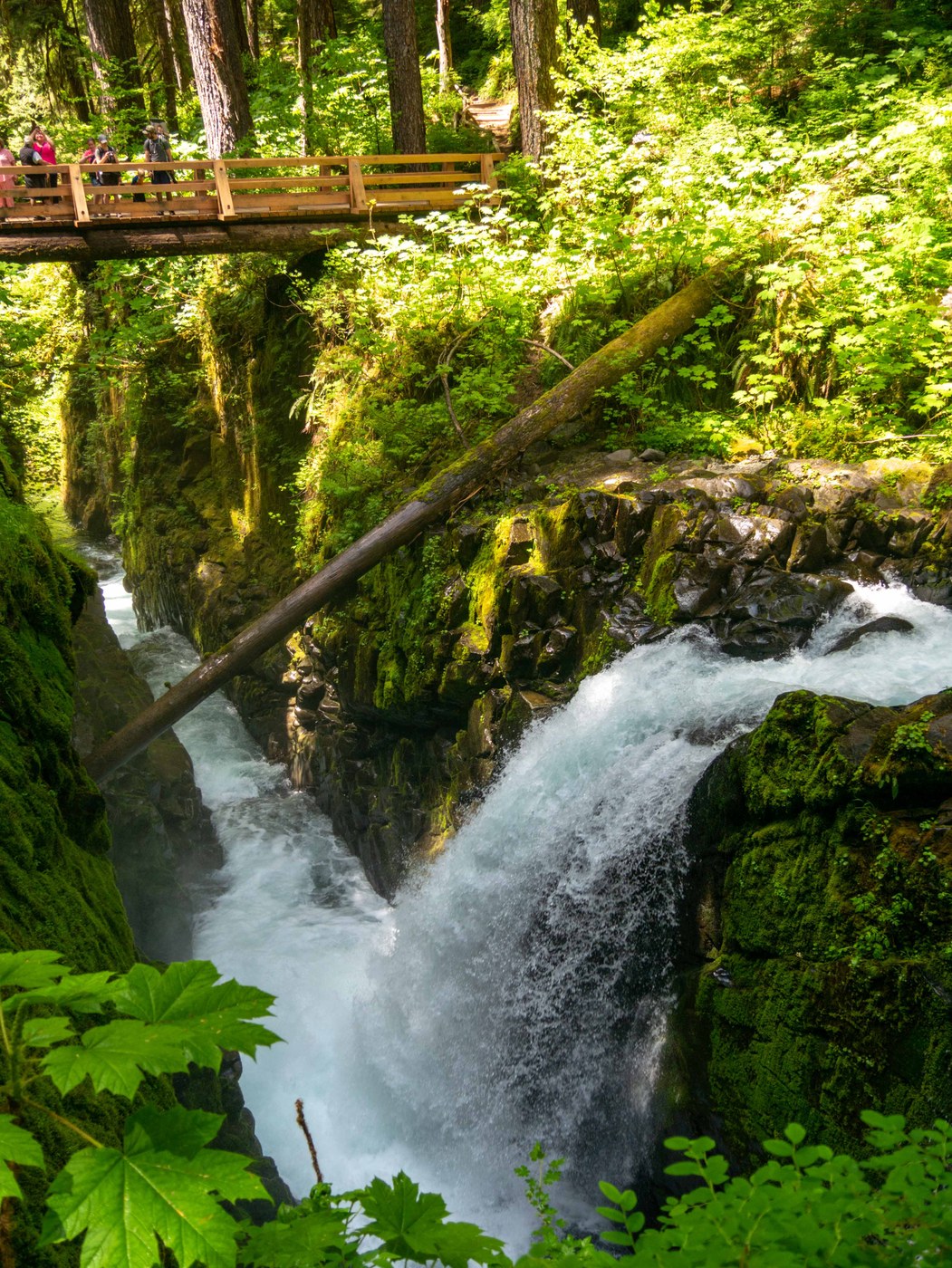 We hiked on a sunny, unseasonably warm Saturday afternoon in early June. The traffic was moderate, but it was less crowded than we thought it'd be. We were surprised to find what we thought was horse scat intermittently along the trail, but other than that, the it was well maintained. We reached the falls and spent quite awhile hanging out with the camera (bring a tripod!) and without it...just enjoying the sounds and (some of the) smells. It was early enough in the year for bugs to be absent. Everything was lush and green, with the river flowing fairly strong. The bridge over the falls was in great shape. We learned from a volunteer on the way back that it'd just been repaired, with mules hauling supplies up the trail. Mystery solved!