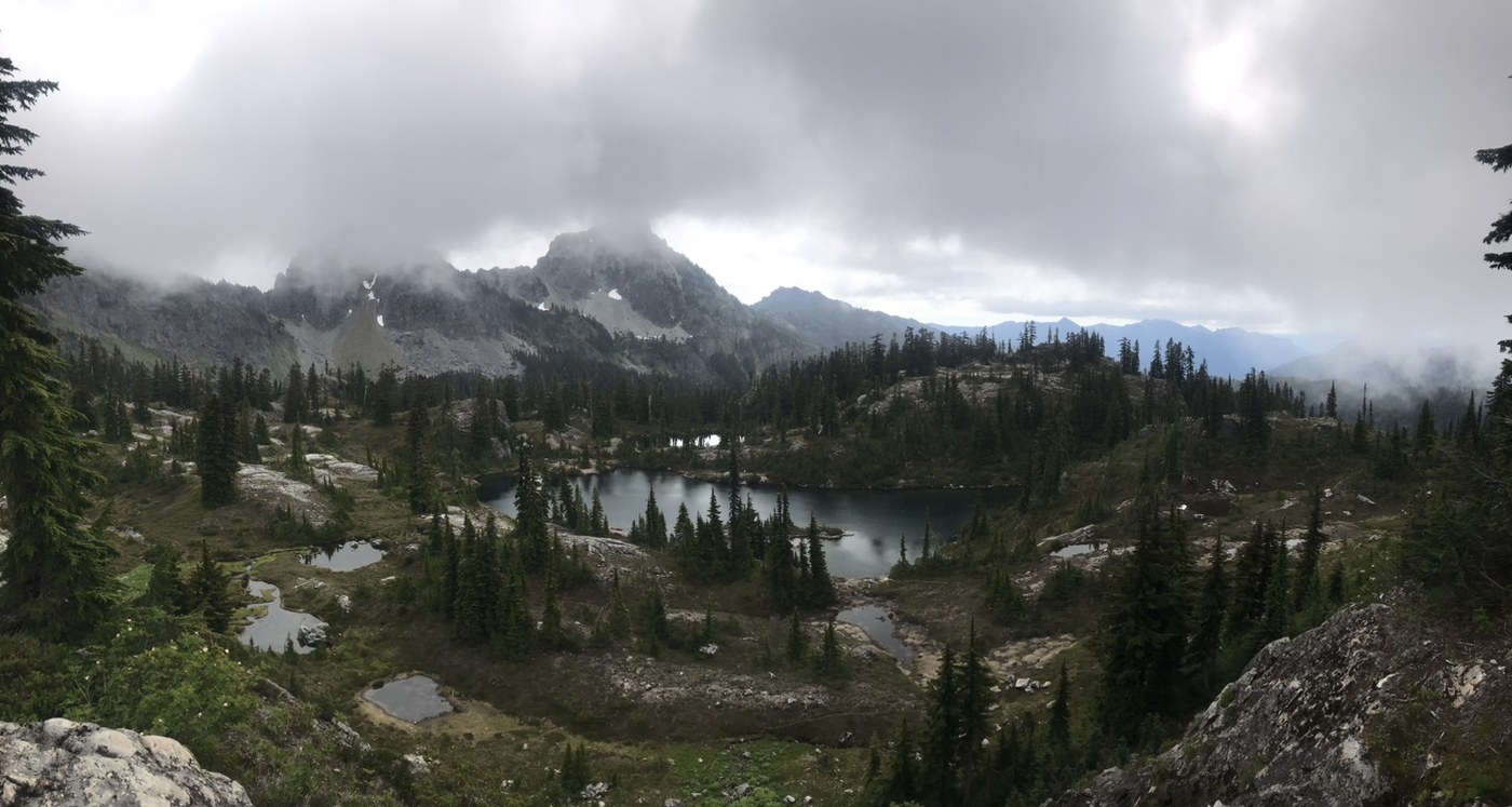 Arrived at the TH at 8 o’clock and took the last spot in the actual lot. First few miles are a breeze with some easy stream crossings. Once you hit mile 3 the real work starts..steep, Rocky, rooty and muddy. Luckily it doesn’t last forever and you break out to rachel lake. It looked like it was a busy night last night as there was a ton of camps set up. I bypassed the lake and hit the “trail” to the right and made my way up to rampart ridge. Made quick work of the Rocky trail and hit the intersection. Left leading to rampart and right leading to Lila/Alta. Having been to rampart before I was excited to explore the other side. Trail gets a bit brushy but it’s clear as day where the trail is heading. I then hit the intersection with Alta/Lila. It was about 930 and the clouds were covering the entire area so I figured I’d buy myself some time and head to Lila before heading up to Alta. In my opinion it is a much prettier area than rampart lakes. I hung out for a bit and then back tracked to the junction and headed up to Alta in hopes that the weather would clear. Just like the description states, it starts of steep and then mellows out. At this point it’s a beautiful ridge walk to the summit. One tough part just a couple hundred feet before the summit where I struggled with my dog. You are on an extremely skinny section where the fall to the right is deadly and you have to jump down about 4 feet. Easy for a human, tough for the 4 legged friend. Other than that the trail is beautiful. Weather didn’t end up clearing by my turn around time so I ended up taking off. Still a wonderful way to get 12 miles in!