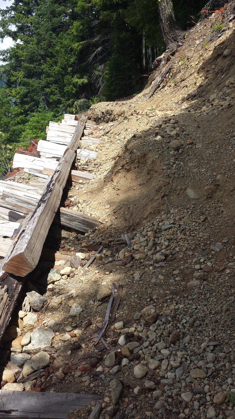 I understand the Ruby Creek trail is no longer maintained, and it is clearly in need of some love. It apparently does not see a lot of traffic, but it was generally easy to follow and only had a few obstacles along the way. The noise of the creek competed with the noise of Highway 20 while the trail rolled along for the next 3+ miles until finally delivering you to an intact bridge across the creek at the intersection with the East Bank trail.