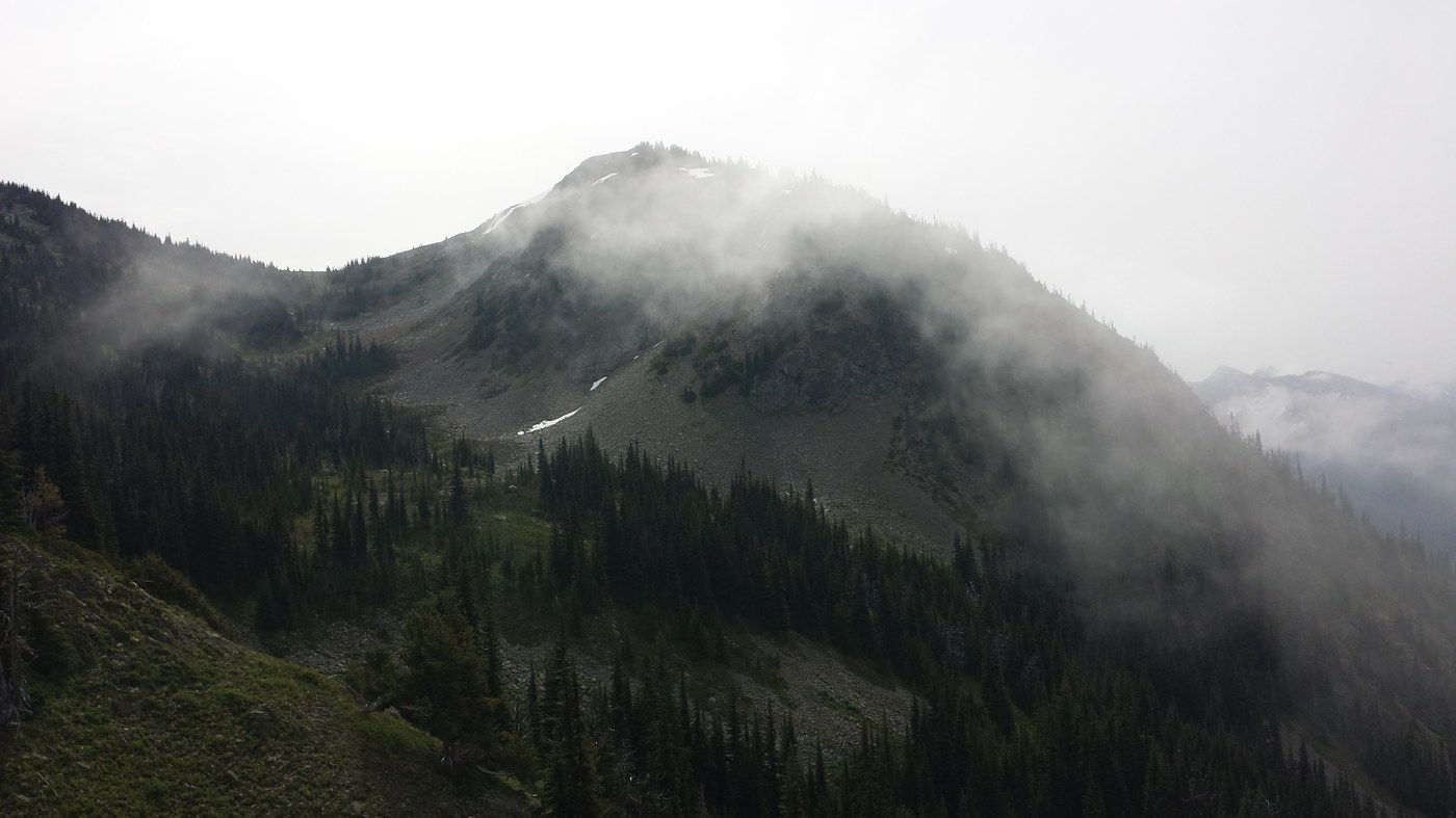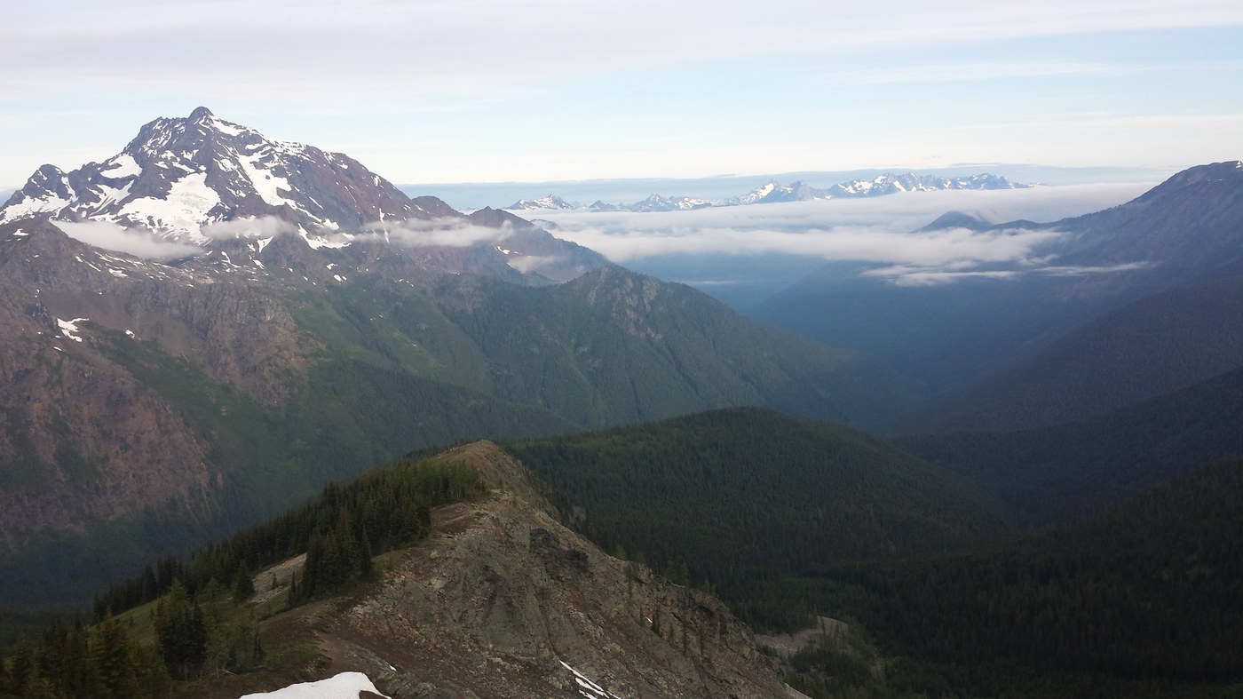 After the dome, there is a gradual descent on mostly stable tread and then little elevation change until Devils Pass. There were not any obstacles on the trail until about ½ mile before Devils Pass. There as no snow on the trail. There was a small campsite at Devils Pass, but, again, no apparent water source. From Devils Pass, continue for another 2 ½ miles on the Jackita Ridge trail, with little elevation change, until you approach the North Fork of Devils Creek. To get across the creek, you first lose, and then gain back 1000 feet of elevation all within about 1 ½ miles. There are few camp sites before crossing the creek that have access to water. After crossing the creek, the trail climbs steeply, and the few additional sites shown on the (latest) Green Trails map are well above the creek and did not have any apparent water sources. The next site with water is about 2/3 mile after finishing the climb and is situated between 2 small creeks. It has room for 1 or 2 tents. I was grateful that it was unoccupied when I got there.