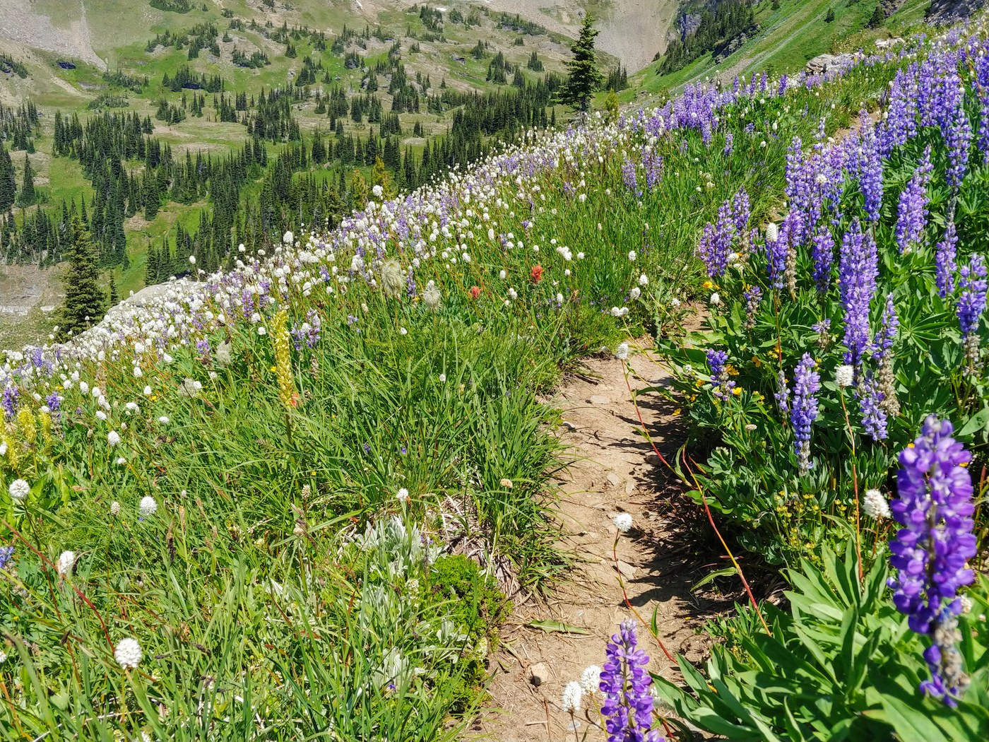 This was an attempt to go from Stevens Pass to Leavenworth but was adjusted to exit on the Fourth of July trail which offered gorgeous views west to Enchantments area, etc. Wildflowers were in peak bloom almost everywhere: fields of fragrant lupine, paintbrush, many species of Penstemon, columbia lilies, and monkeyflower were putting on a delightful show. Also peaking were mosquitos, unfortunately. Josephine Lake had quite a few (loud) campers, otherwise the trails were peaceful for myself and two fellow hikers. You must be prepared for sections of unmaintained/nonexisting trails in some sections. You can find my public tracks for each day on gaia gps. --pdxterrie