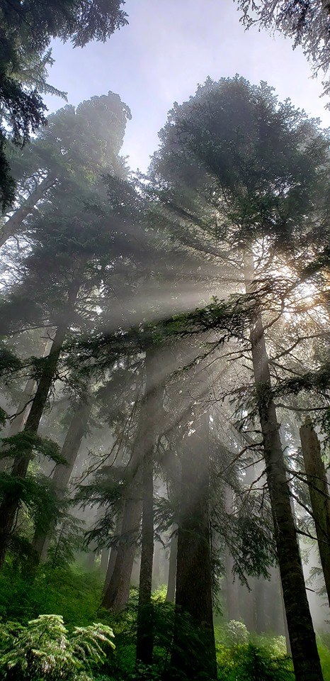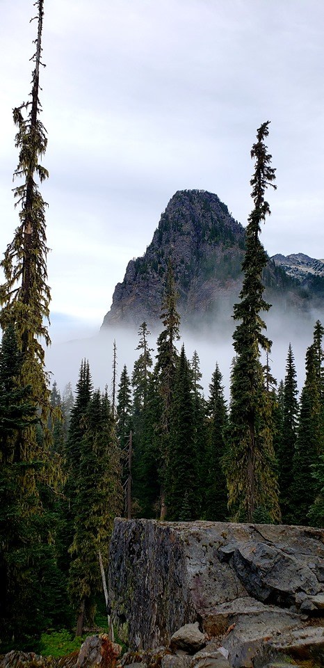 We got to the trailhead at a little after 10 in the morning to find a few spots still available. The walk through the forest was wonderful. It was foggy for most of it, which made for some fun and neat picture opprotunities. When we reached the boulder fields, we heard lots of pikas and saw a couple.