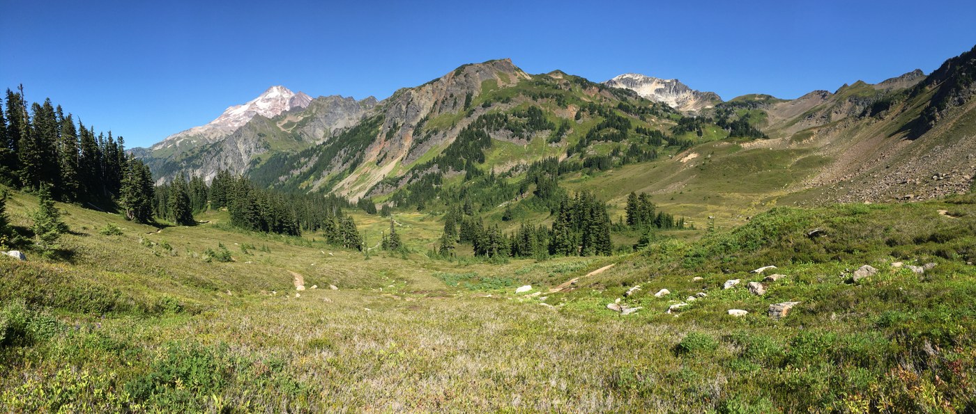 Spent 4 days in the glorious Glacier Peak wilderness. I hiked in to Glacier Peak Meadows via North Fork Sauk and the PCT through Red Pass. I intended to head into the Glacier Peak basin from the Meadows, because according to Green Trails there's a climber's trail connecting them, but I didn't find it. So I hiked around via Foam Creek, which is a gorgeous, rugged little trail populated by herds of marmots. The last section is definitely scrambley so be judicious about the exposure. Views abound, especially facing south on the PCT. If you're hiking north, take a few moments to stop and turn around. White Chuck Cinder Cone is impossible to miss as you pass it, and I wish I'd googled it before leaving home because I would have paid more attention, as it's an interesting volcanic feature in the area.