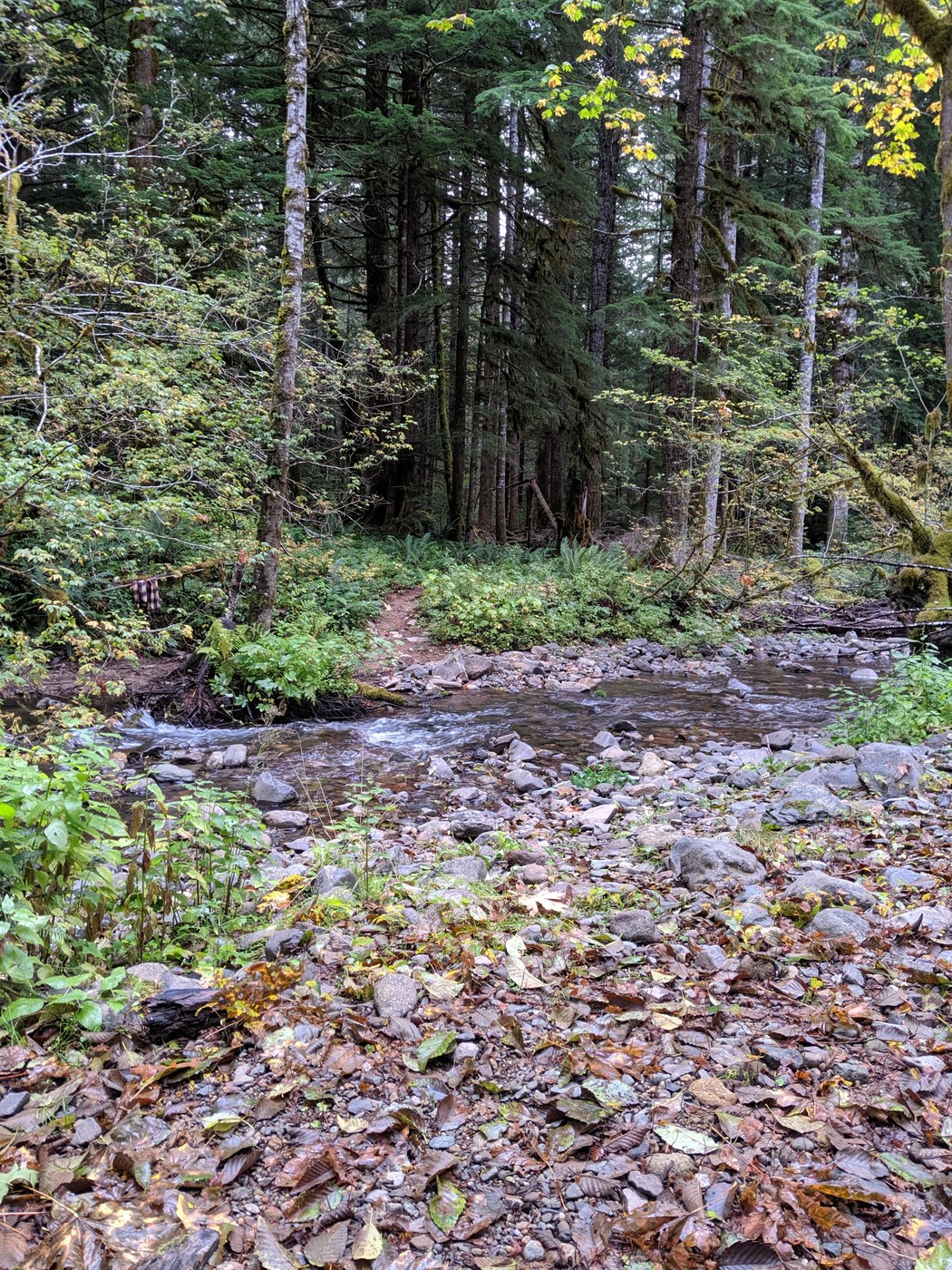 Started at the Trapper Creek trailhead at 6am solo. Took the Dry Creek trail 194 (pretty flat with some small inclines, trail is in good condition in dense Forrest.) going in. Then took Big Hollow trail 158 (uphill trail in good condition till less than a mile from the bear camp trail junction where there is thick bushes covered in snow on a narrow trail. I had to crawl on my hands and knees to get through these, also could be easy to loose trail in the bushes. Snow starts a mile or two from bear camp junction.) Bear camp has a couple of good camp spots. At the trail junction I took the Observation trail (in good condition gradual decline with some snow on ground and some treewhacking) south to Trapper Creek Trail 192 (trail starts out with a gradual decline then turns steep, narrow, switchback decline with obstacles on trail. Hiker only trail.) On the Trapper Creek trail in the steep area there is a beautiful waterfall in a huge slide area, it is a must see! None of the Creek crossings have man made bridges (rock hopping and log crossings) in place, one Creek crossing had a washed out bridge. Lots of shrooms on the trails. Several good camping spots next to water sources on the trapper Creek trail. Couple of bridges over small creeks on the Dry Creek trail.