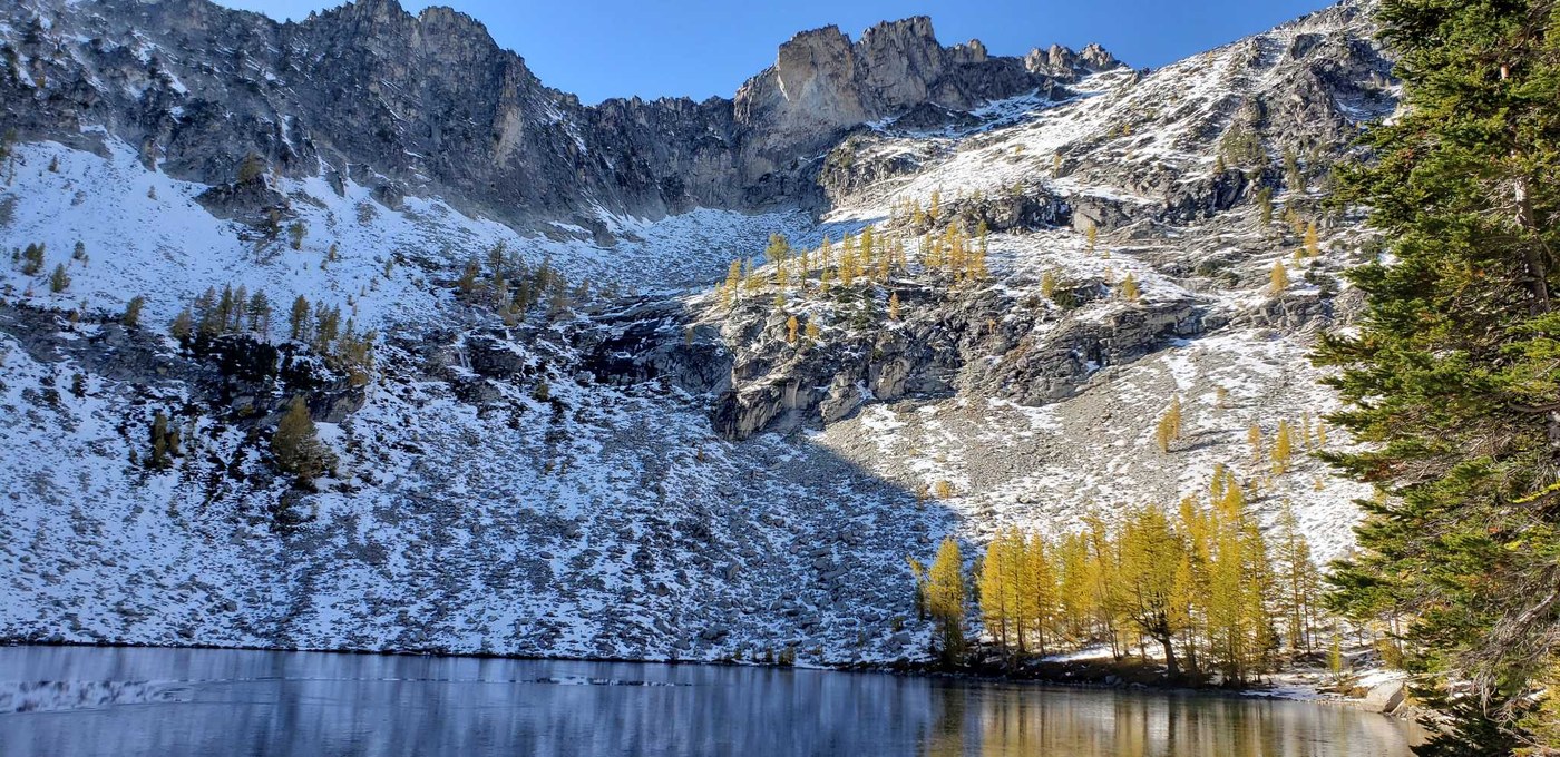Good boot path through the snow. Traction devices of some kind recommend, but not necessary. Larches right at prime. Great trip, get there soon!