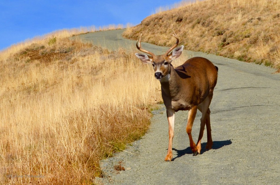 Most exciting was seeing again a young buck who frequents the area, sauntering down the hill toward me.