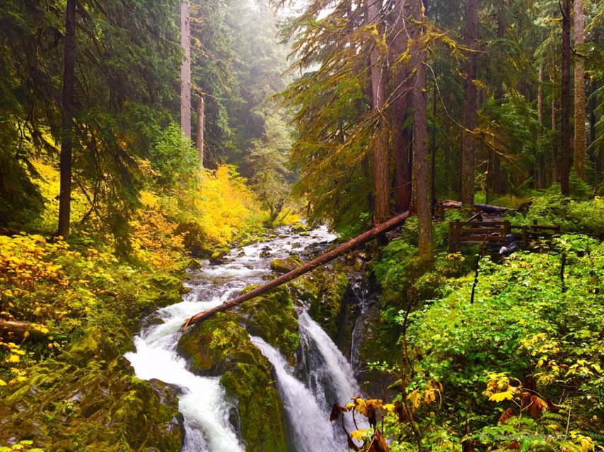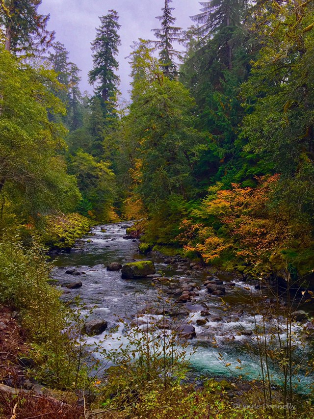 A light rain accompanied us, keeping the usual crowds at bay. Some muddy spots, but easily navigable. The colors were spectacular though, all the way up the road as well as on the hike.