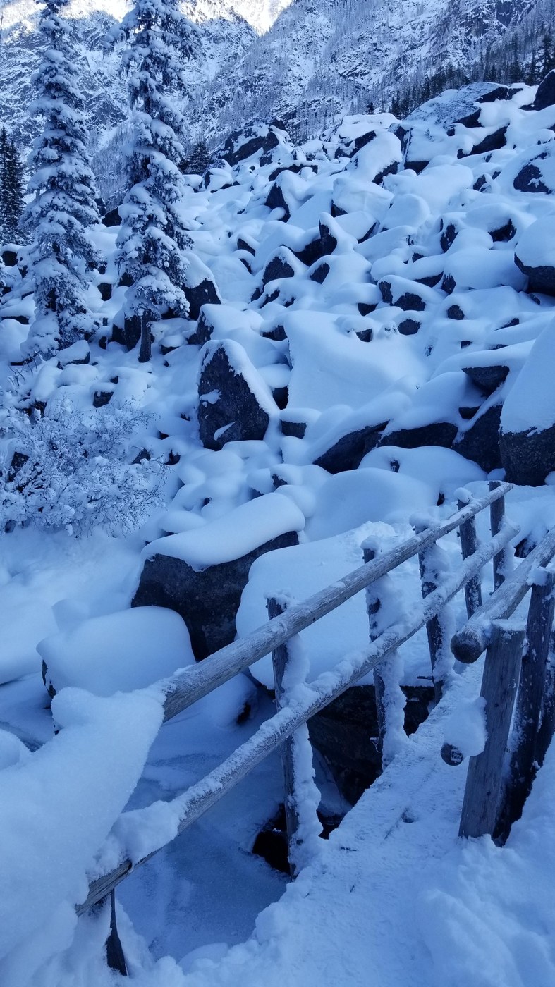We arrived at the trailhead at about 11:15, with plenty of parking left at the trailhead. It took us about four hours to get up and about three hours to get down. (We're slow hikers.) At the top, the trail was well compacted, with about a foot of snow covering the ground. Going up wasn't too hard, but coming down, we wished we had remembered to bring our microspikes. The last hour of the hike was in complete darkness, but thankfully we had remembered our headlamps. It was about 13° F once we reached the trailhead and my beard was completely frozen over.