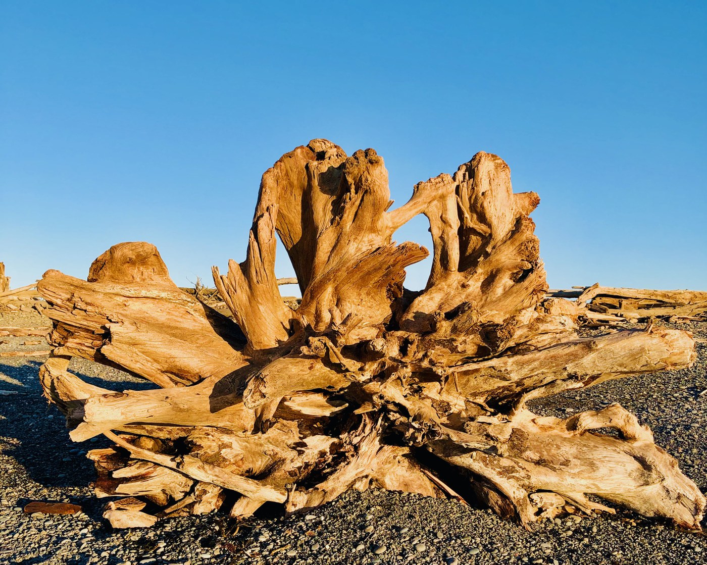 Tons of drift wood all along the shoreline and a rocky jetty cutting out into the ocean to the south towards the views of James & Little James Islands just off shore of the mouth of the inlet.