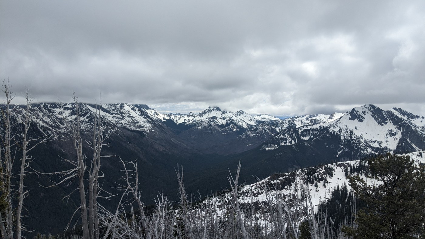 The trail starts across the road from the trailhead and meanders a bit in a flatter area before turning up the ridge. Trail is mostly in great shape and easy to follow through the forest, with a few passable blowdowns here and there and some vegetation encroachment. It's a steep one, with a couple flatter sections and a lot of creaking trees.
