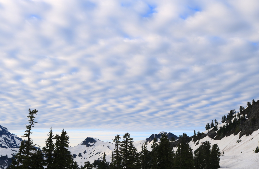 The road is open all the way to Heather Meadows visitor center, where I parked. Passing the gate and heading up the road I expected to encounter snow at some point, but the road is 100% clear all the way to the Artist Point parking area. There were 2 snow removal vehicles working, which I made sure to give a wide berth on my way through. After the parking lot it is snow anywhere you want to go, so be prepared for that. The snow is probably still 15 feet deep.