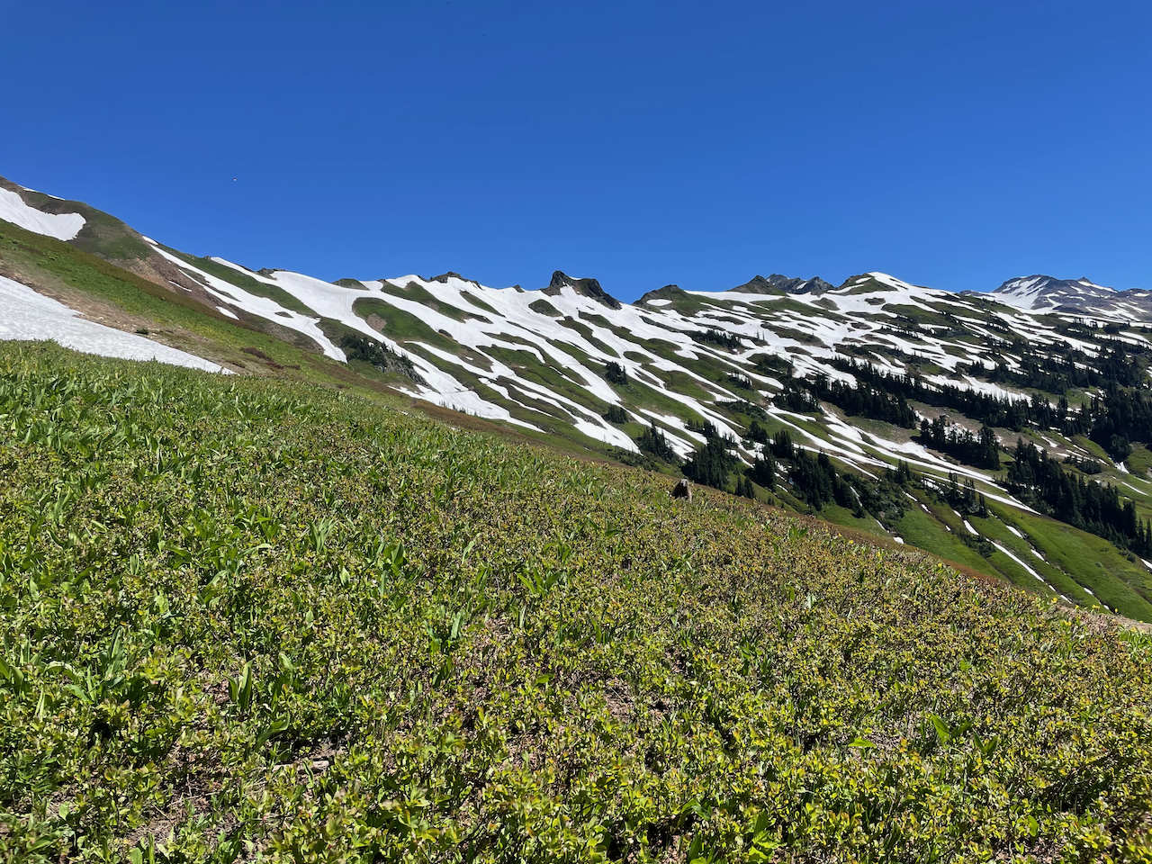I updated the first photo to show what it looked like near White Pass from around White Mountain because I noticed that I posted the same picture of the marmot at the pass twice by accident 😖.