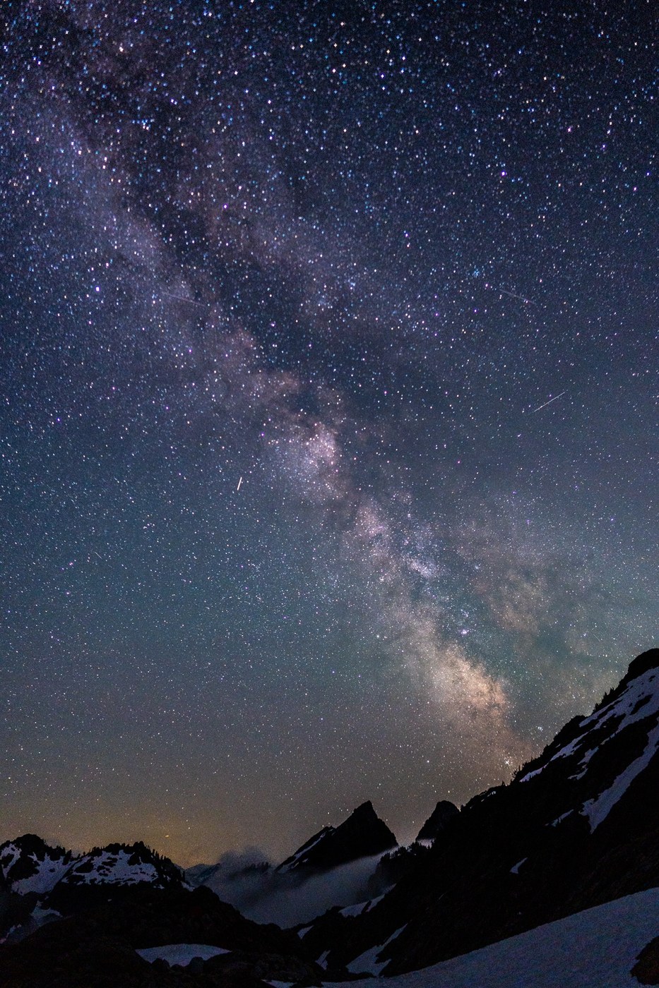 A few challenging snow bridges to navigate on the way in. Conditions changed rapidly from day 1 to day 3. Continuous snow in the basin up to the lake. Many dry campsites around Foggy Lake. Ice axe and crampons used to gain the steep snowfield to the base of the rock. Microspikes would’ve been ok. The first rock bit is very steep with class 4 moves. If you take your time can find a ledge system up. The upper but up the climb had a few challenging moves. The summit provided views of all the volcanoes and North Cascades. A challenging, beautiful scramble. Was excited to finally get up it.