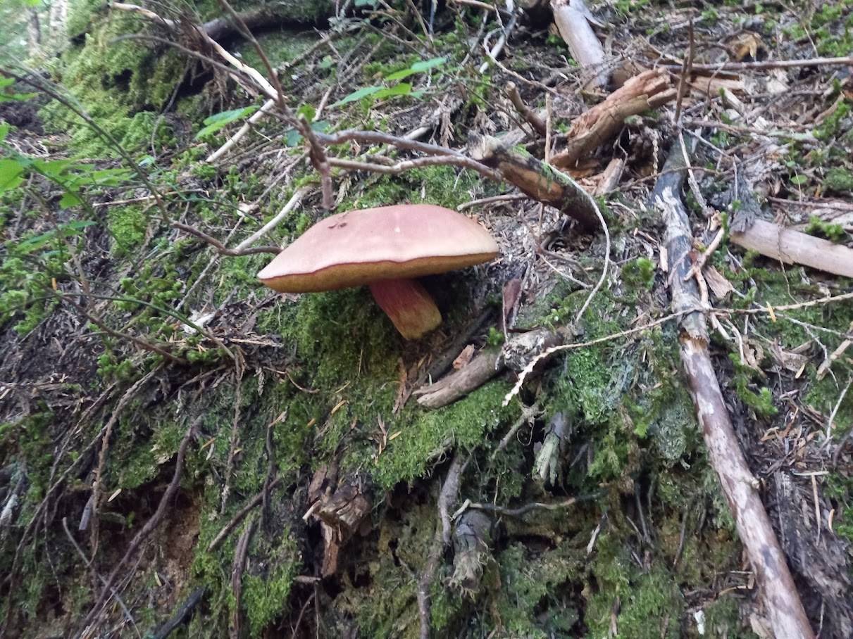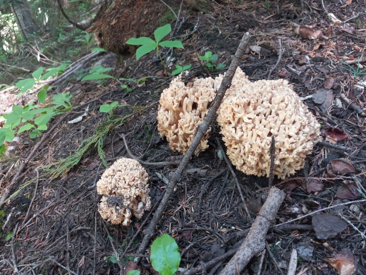 We left the PCT at 11am. The sign that is at the junction where the Deception Creek "Connector Trail" (numbered 1059.2 or 1059b on maps) meets the PCT was almost illegible, so I sharpied some directions on it. A fellow PCT hiker almost went down this trail instead of staying on the PCT, so hopefully I made it more clear. Anyway, we continued down this trail and came to a campsite with a recently used campfire. Right after this camp is a small creek crossing that I went boots off for. We continued downhill and encountered lots of mushrooms and tons of fallen trees.