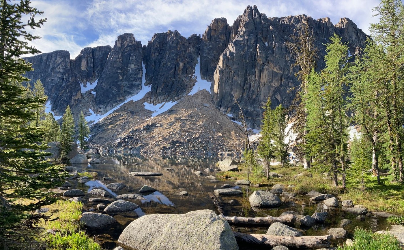 Lakes. Visited a lot of lakes on this trip. Lake 7119 was a gem, and Fool Hen Lake was in good shape, but Foxy Lakes and Fawn Lakes are rather burned. Peepsight Lake is lovely, and Airview Lake is in good shape (though the trail to Andrews Pass is bad). Quartz Lake is lovely even if it's mostly burned around it and Upper Cathedral Lake is beautiful as always. I especially loved the quasi-lake below Crazy Man Pass, a lovely place to camp.