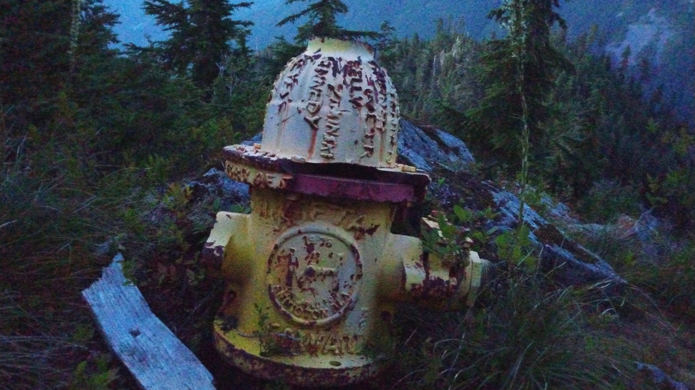 Anyway, I headed south straight up the ridge towards Mailbox. TONS of fallen trees to scramble over, under and navigate around for the majority of it. Steep from 2000'-2800' or so. Choked with dense, young trees and blueberry bushes towards the top. Saw the fire hydrant below the summit.