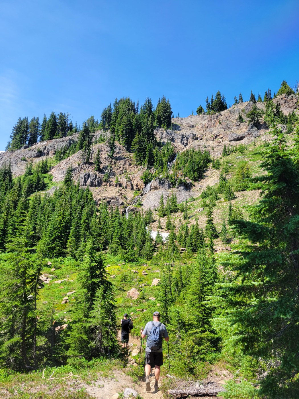 There were many stream crossings which were easily navigated and provided opportunities for refilling our water bottles. Highly recommended before tackling the final couple miles of trail which consists of 14-15 unforgiving switchbacks.
