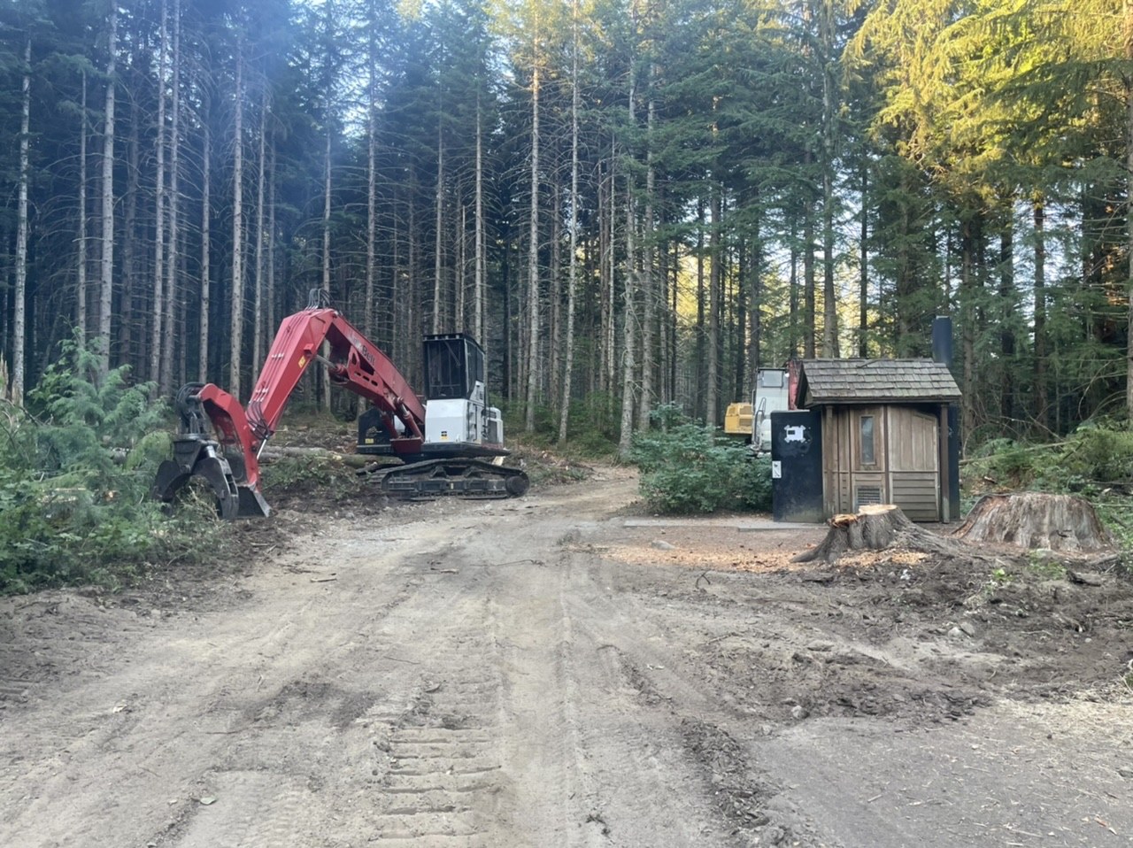 The trailhead is dominated by heavy logging equipment. The road down is in good condition but lots of trees on the side waiting to be taken away. The gate was closed when I got down, another car parked next to me which I guess was the guys at the lake who must have actually walked the road.