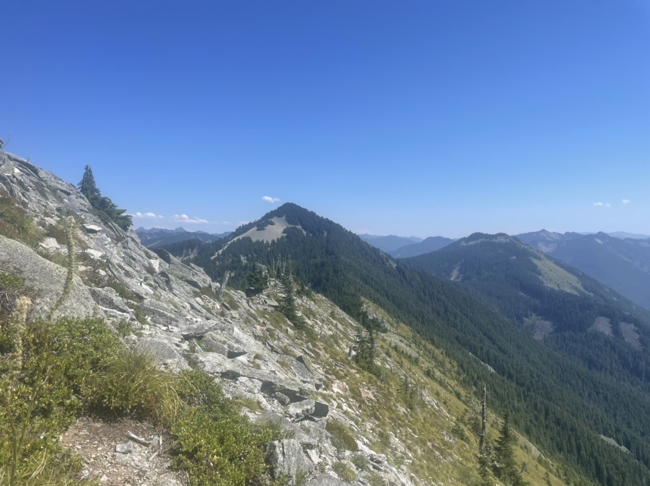 I did a big loop as a hike/trail run. Knew that there was some logging on the roads around Ira Spring but didn’t see anything in recent trip report and didn’t look at Talapus report before I left. Bit of a mistake as you will see below. Parked my car just outside the logging gate a couple miles below Talapus around noon. The gate was open and sign said the area was closed 2am-12pm M-F so I thought I was good. Ran to Ira spring and saw where some logging had been done on the road but didn’t look too active, road is much better than it was last year. Cut over to Putrid Peak trail from the connector from Ira Spring. That climb is brutal, but it was a lovely day. Cut over on the ridge (sometimes there is a trail to follow, sometimes just a choose your own adventure ridge scramble) to Defiance. Already out of water so skipped the peak and went down to Mason lake to refill. Very peaceful at the lake. One person swimming, one person fishing. Went on to Rainbow and then Island Lakes. Trails all in good condition, easy to follow, lakes very peaceful.