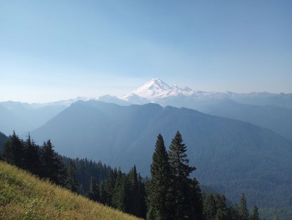 This hike, Excelsior Pass, and Church Mountain are all in close succession along the Mount Baker Highway, and all are challenging hikes that reward you with good (and fairly similar) views. I like to alternate between them because I think they each have their own charms (or punish you in somewhat different ways, if you like). I chose Welcome Pass today to keep the total mileage and gain a little lower. Though I'm not sure it's actually easier than the other two, because you do most of the gain in a single brutal mile.