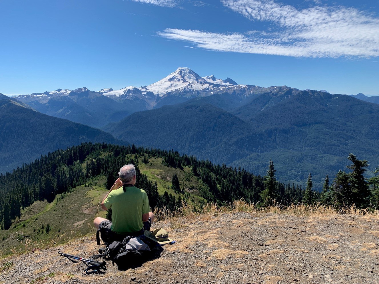 First time on this ridge! Had heard horror stories about the road but it was in excellent condition. Jared and I hiked up to Excelsior Peak and then to the next peak. Wanted to hike the entire ridge but too long and no takers on a key exchange which would have been perfect. Berries by Damfino "lake". Spectacular day. Mt. Baker and Shuckson in all their glory!