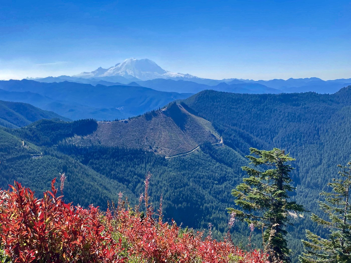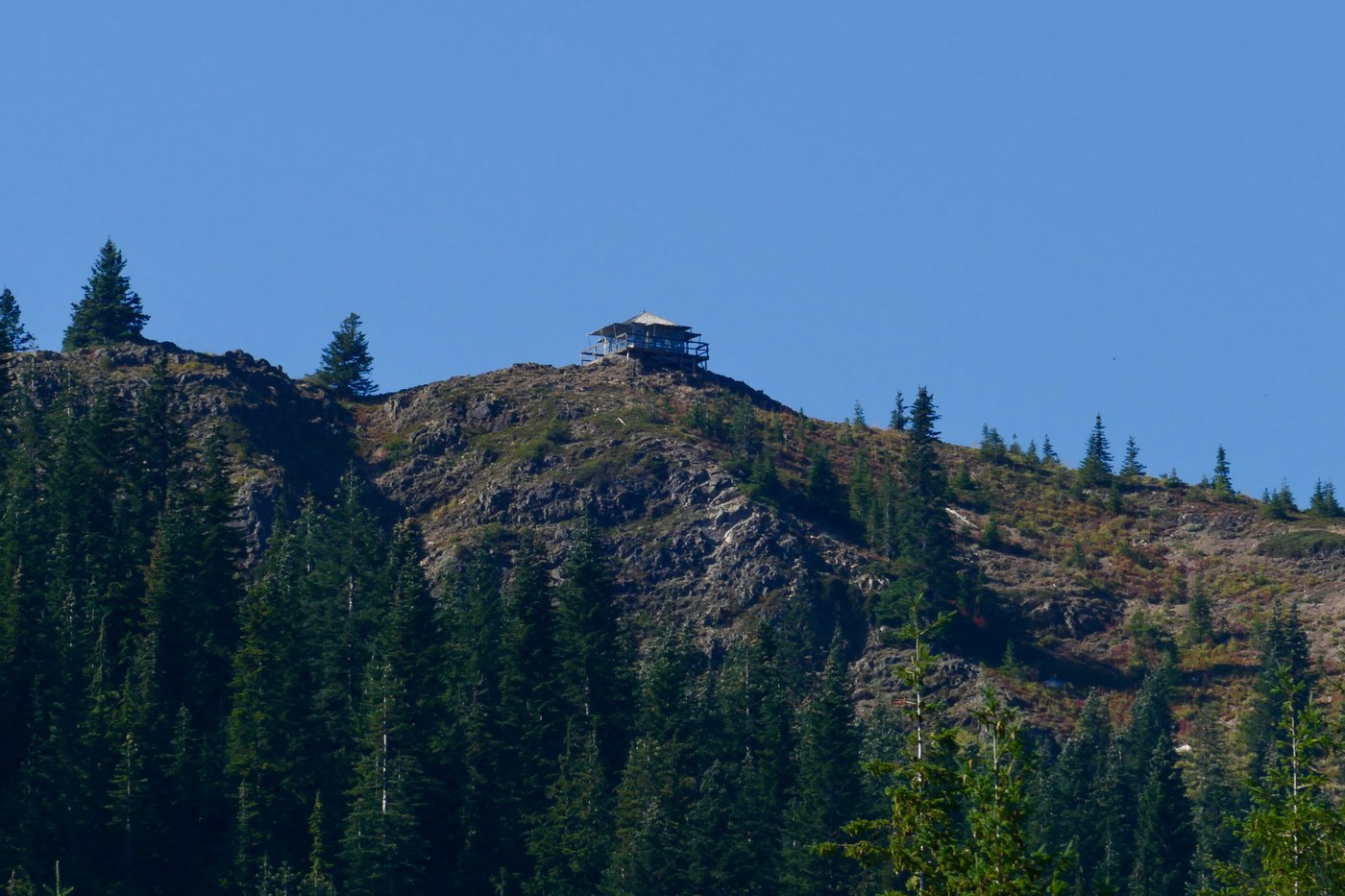 On Monday, 9/26, eight members of our senior hiking group hiked to Kelly Butte. The weather was sunny but hazy. The temperature was in the mid 70s but the wind kept us cool. We drove bumpy dirt roads to the trailhead. We picked a lot of huckleberries. There weren't many other hikers. The trail was so dry that it was slippery. On the way down the steep section I slipped on dry dirt on a rock and scraped my elbow. The road was worse than the last time I was there (2020). Other than that it was a nice hike to an old lookout cabin.