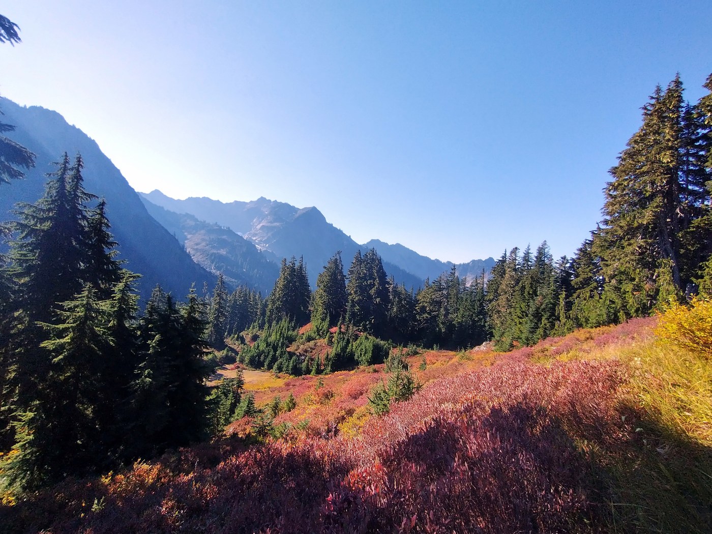 The only notable wildlife I saw was a herd of elk with two bulls on the west fork of the Dosewallips and a pair of grouse near Camp Siberia. There wasn't too much in the way of autumn colors with just a tiny bit of huckleberries turning red at the upper reaches of the trail.