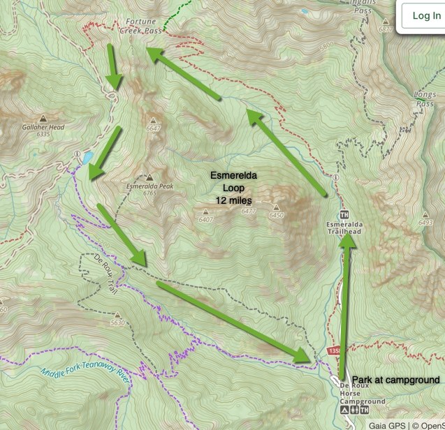 Bike-N-Hike on De Roux Creek to Gallagher Head Lake, Esmeralda Peak Loop, Fortune Creek Pass, Esmeralda Basin (Esmerelda)