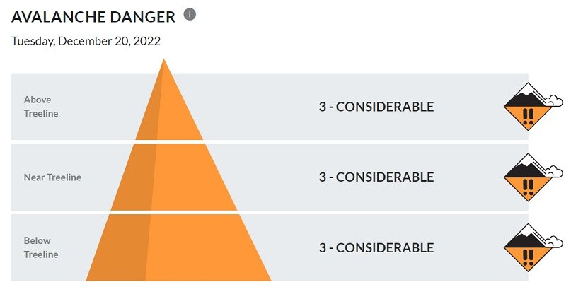 Today's NWAC forecast was "considerable" at all levels. Even though the Granite Creek trail does not cross steep slopes, there are steep slopes above the trail (altho the slopes are tree covered), as well as more heavy snow expected as the day progressed. If anyone reading this report has information about the avalanche risk of this trail, please comment.