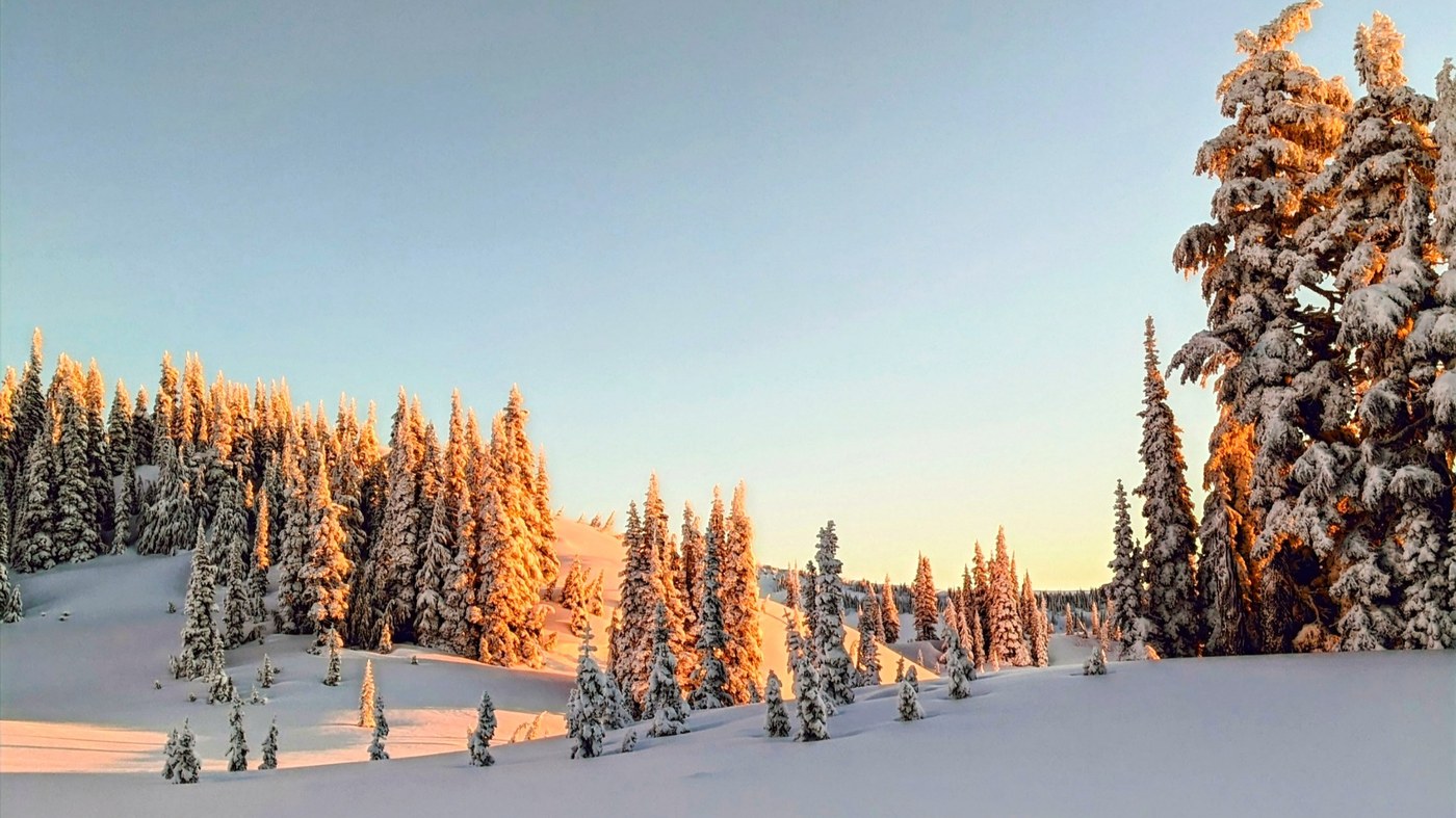 Sunrise the next morning at 8am was unparalleled with the sun casting a soft golden glow across the whole ridge, turning Mount Rainier a rosy pink, then gold, and finally white.