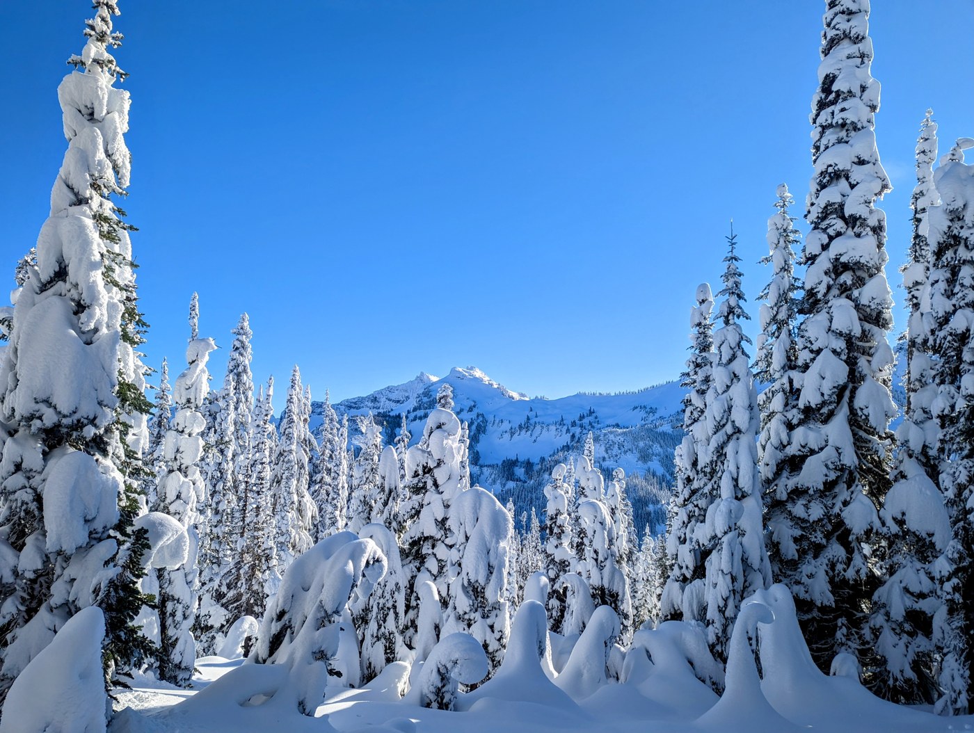 For the entire Mazama Ridge snowshoe trail, we had to forge our own route through the snow. Good off-trail navigation was critical for us to stay on course and avoid avalanche-prone terrain nearby.