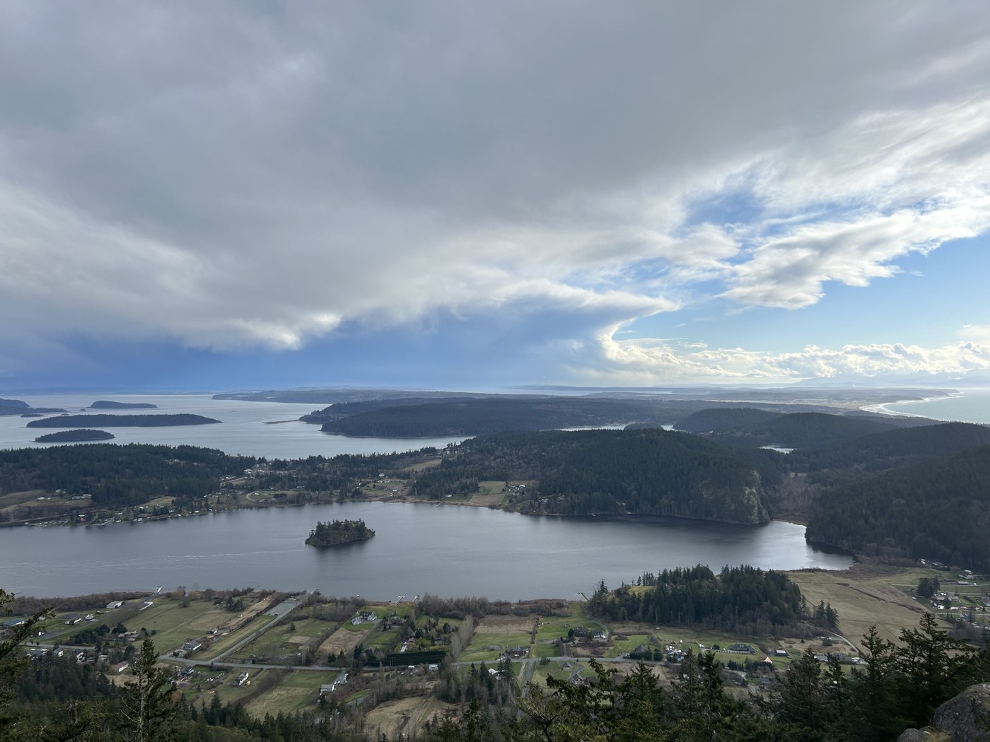 After a cold and snowy Saturday night and rain in the Sunday morning forecast, we decided on an afternoon hike to hopefully be out in better weather as the day went on. There were some dark clouds on the drive up to Anacortes, but we also saw some blue sky starting to open up to the North. We arrived at the trailhead shortly after 1 PM and there were only a few other cars in the parking lot.