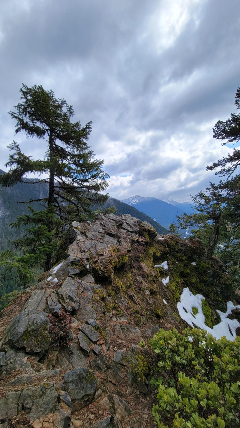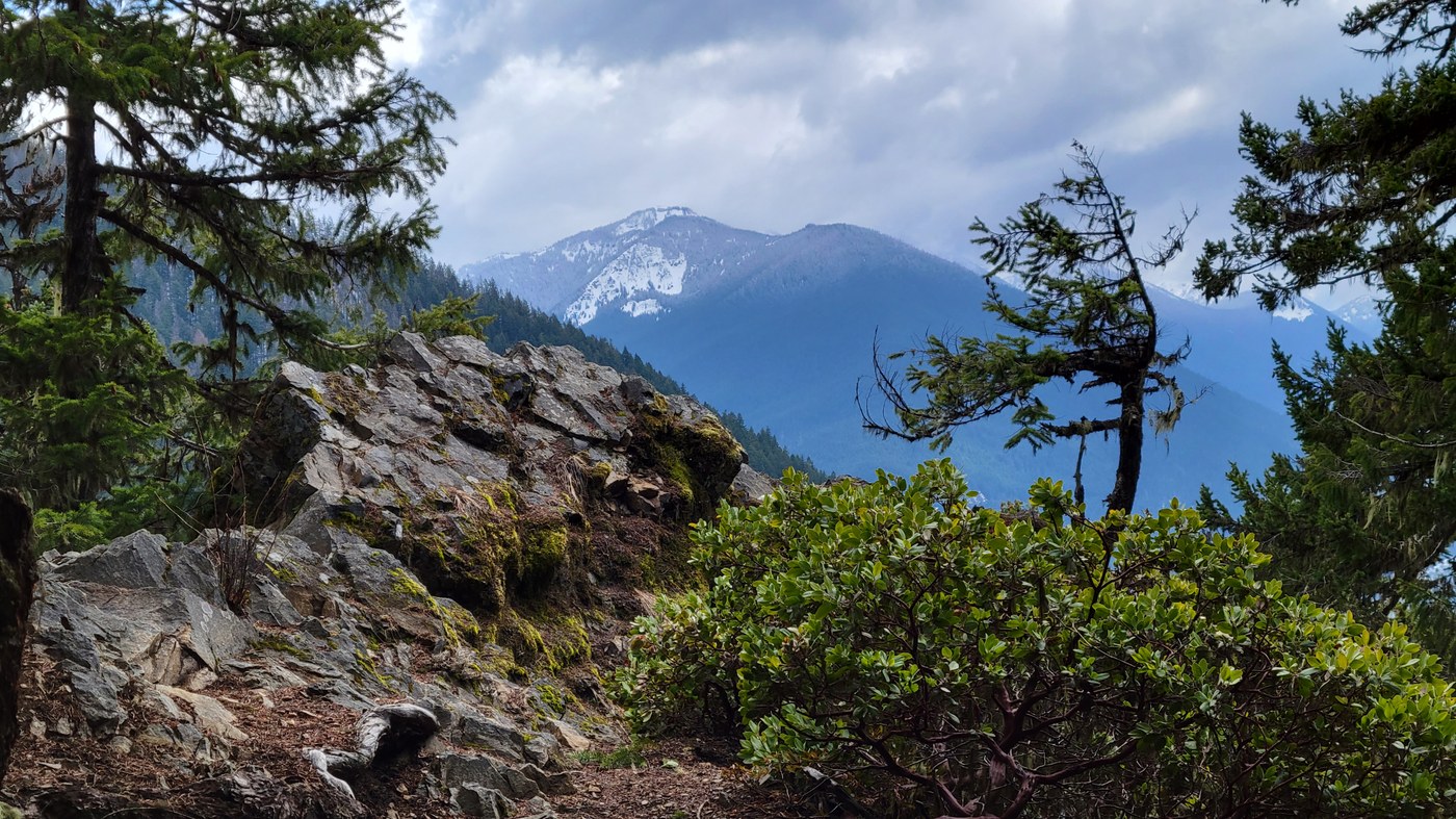 Features of the route: big, beautiful old growth trees right out the Camp Sheppard parking lot. More tremendous trees all along the way--I'd wager 200 years old, many of them. The ones near Sheppard look truly ancient. . . Like, 500 years. The view from Little Ranger is quite nice, and there's a great promontory for snacking (see pic). Also, there are yew trees here and there along the trail, if you know what to look for. We saw not a soul today. Happy and safe hiking, Everyone!