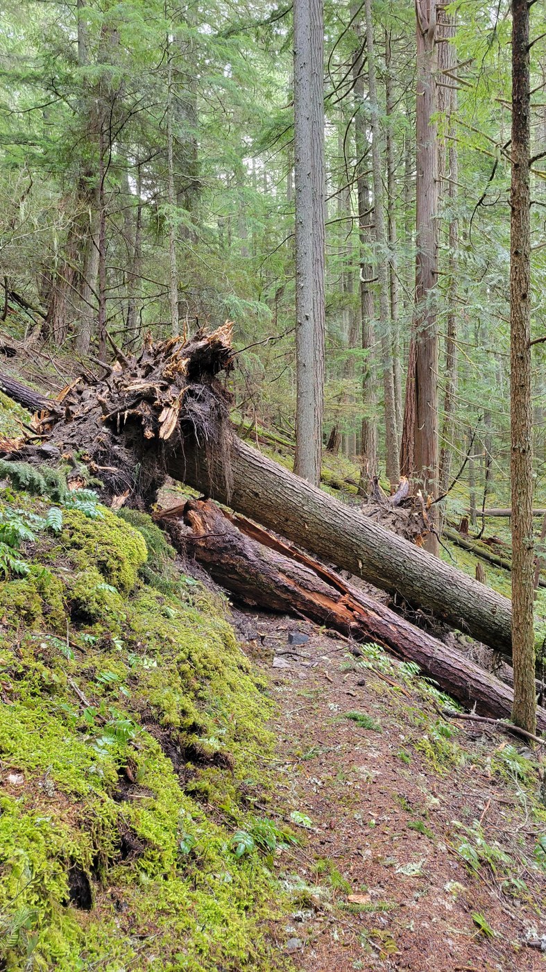 Trail conditions: the White River trail is dandy--dry, and only a couple easily navigable blowdowns (well, one is a sit-and-spin if you're short). Little Ranger has about 8 blowdowns, 3 of which require hoofing it around or sit-and-spin (see pic). 10 blowdowns total on the two trails. While there is little snow, there is some compact, slippery ice starting about a mile before the Little Ranger Peak viewpoint. We were mindful of our foot placement on the way up, and used poles on the way down. If The Melt continues, this should be a non-issue in about ten days. If it snows again and the nights are freezing--well, grab yourself a groundhog and give him a good talking-to. We brought spikes, but they're no use; the ice is too sporadic.