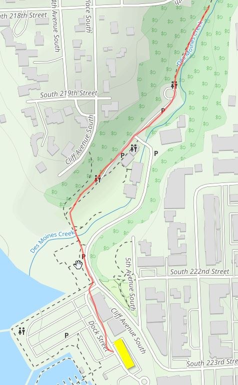 The path from the marina to the park is pretty obvious, following sidewalks with nothing of note. Once in the park, cross a small foot bridge over the creek before turning right and heading away from the sound. The path through the park to the trail isn’t really marked, but it just sort of funnels you through a parking lot to the north end of the park to the official start of the trail.