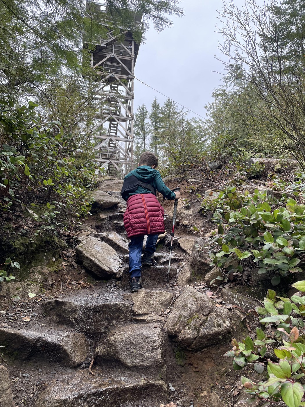 Had lots of company on this hike, plenty with dogs and kids ( all ages!). My 9yo kiddo had a sling on, and did fine both up and down, but mind your footing, as there are definitely rooty/ rocky sections at times.