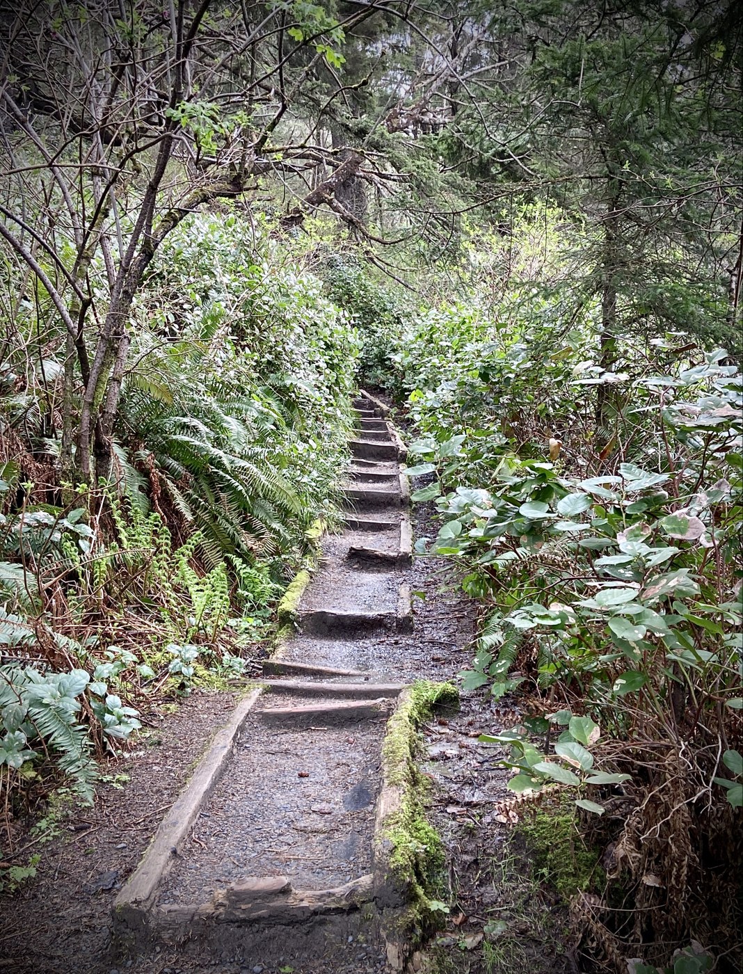 Arrived to the trail head around 7:45am on a Thursday, and had the place to myself! That was due to the time, but also the weather. It had been raining all morning, but thankfully it stopped at the coast just as I arrived.