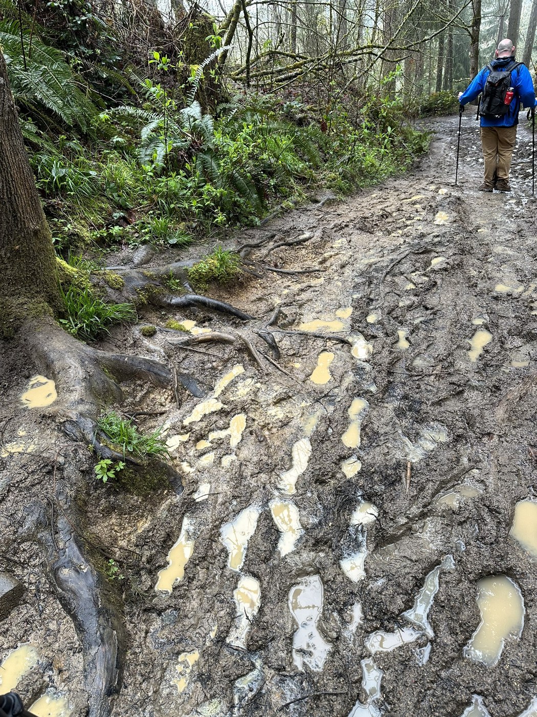 Mud mud mud! Started at 8am rainy Sunday and the 3rd car in the lot. Felt like I was taking a bath in the mud. Trail is wide gravel path until left turnoff down to lower mashel falls. Peak flow. Approaching from bud blancher you’ll hit lower then middle then upper.