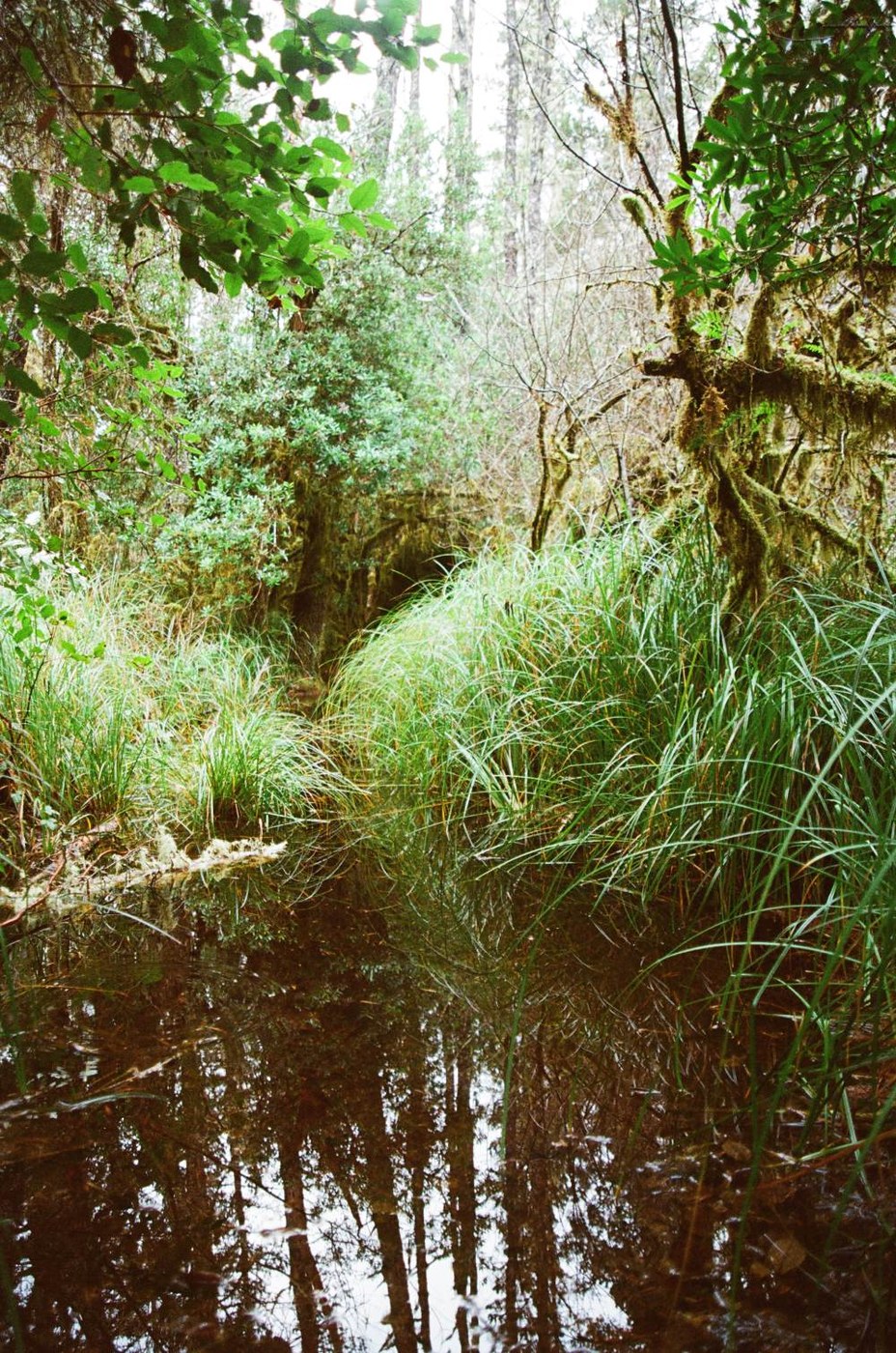 We started on the dune forest loop trail headed west and south. There are several junctions, but all are signed. Our intention was to take the weather beach trail over to the pacific ocean side of the spit. Unfortunately the trail got increasing brushy and mucky until finally ending in a leg swallowing sedge bog. Being that it looked quite deep and our feet were quickly up to the ankles in water, and that it was the middle of winter, we decided to call it.