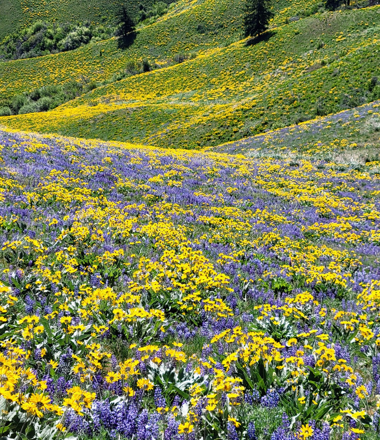 There are incredibly vibrant and dense displays in the upper areas of Horse Lake Reserve and on north facing slopes; the lightening trail (pictures 1 and 4), upper Coyote Canyon (picture 3), upper Homestead trail, and the top of the Sage Hill trail (where it meets the Homestead) are all especially good.