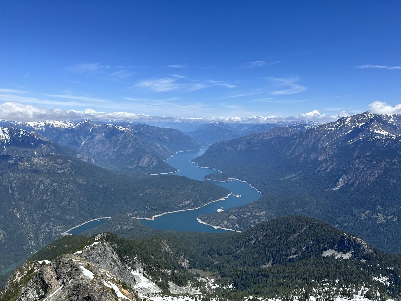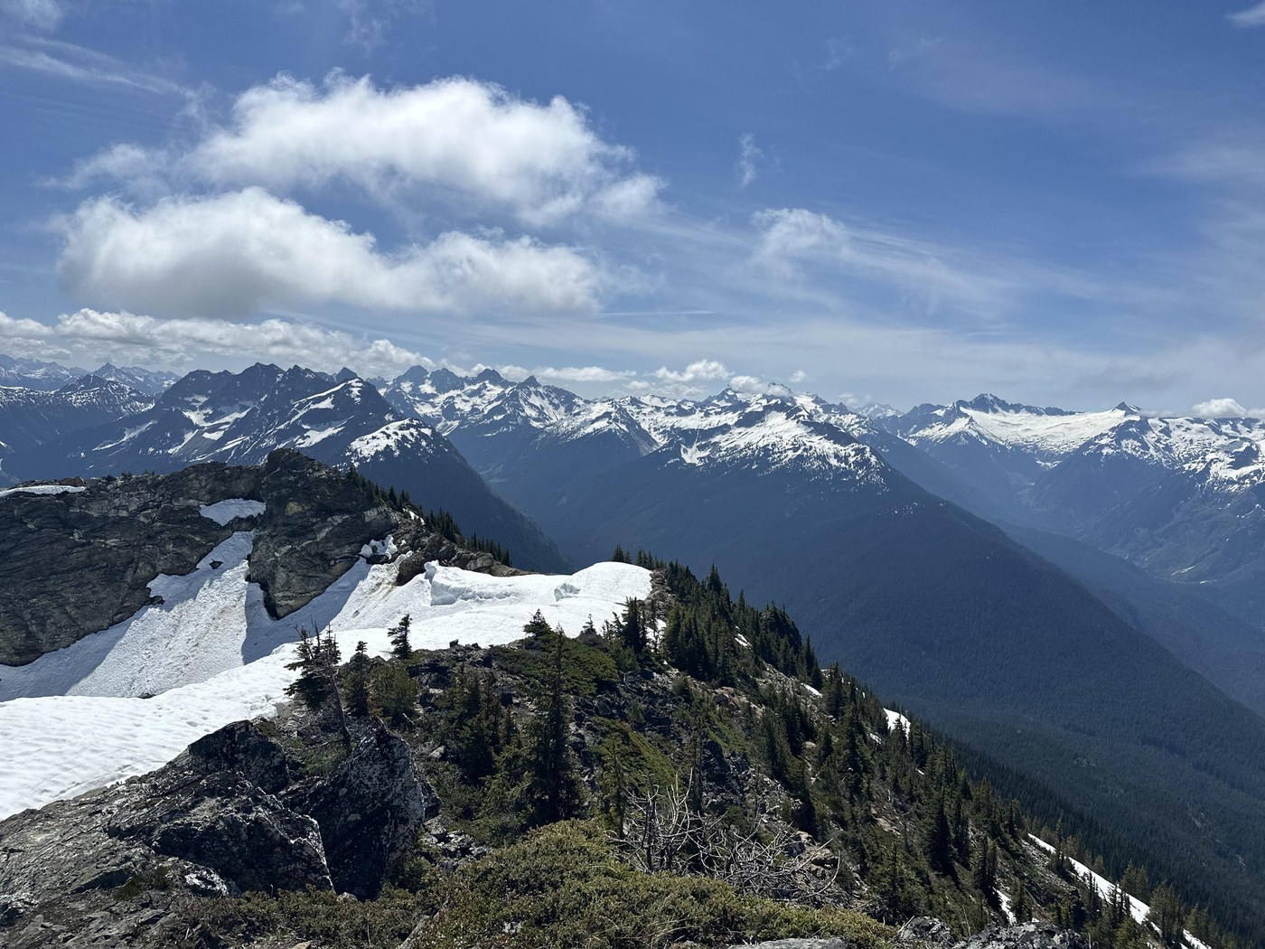 Some big cornices along the top but the ridge itself was melted and easily traversed. It was humbling taking in the 360 views of the surrounding peaks, glaciers, and lakes. Didn’t see anyone the entire way until descending near the Fourth of July intersection and then it was busy on the Thunder Creek trail. Will in the future try the approach from Panther Creek to escape the crowds of the Colonial Creek CG even though it adds a few miles. Total trip, 18 miles over 7 hours of running and hiking.